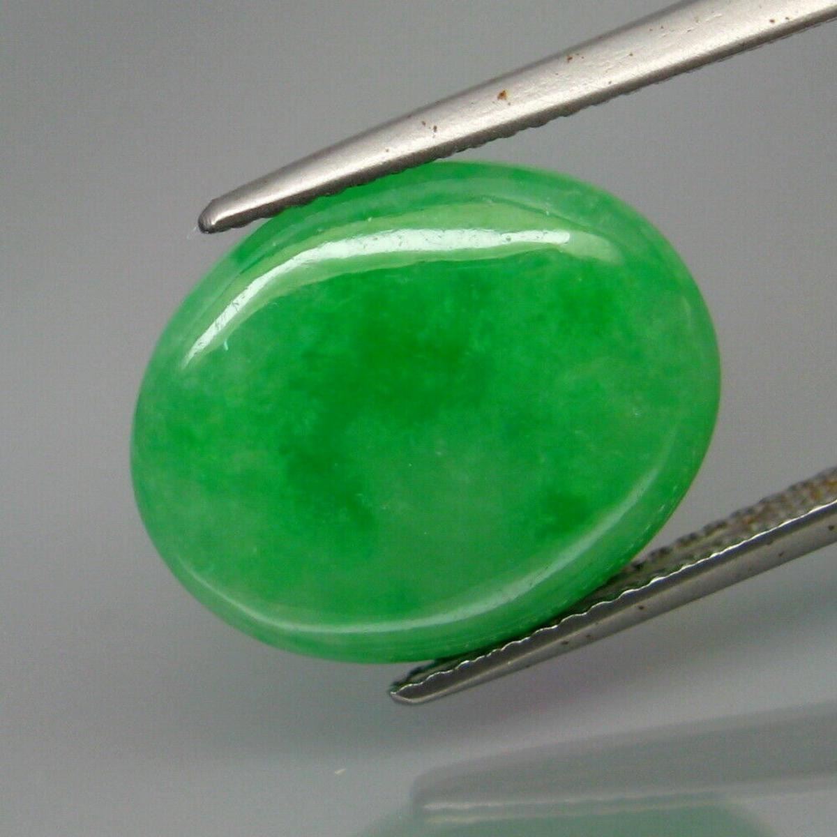 Jade SHAPE Oval Cabochon ; WEIGHT 8.62 Ct. SIZE 16 X 13.3 X 4.3 mm QUANTITY 1 Piece ; COLOR Green CLARITY TRANSLUCENT ; TREATMENT None; HARDNESS 6.5-7