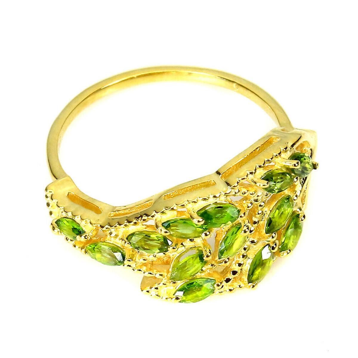 925 STERLING SILVER;PLATE-14K YELLOW GOLD;RING SIZE/Resizable-9.5;MAIN STONE-CHROME DIOPSIDE;TOTAL WEIGHT-3.49 GRAM (TOTAL WEIGHT OF SILVER + STONE)DIMENSION-* STONE 4.0 X 2.0 MM.;* RING SIZE- 9.5;* FACE RING- 23.0 X 12.0 MM.;MAIN STONE SHAPE-MARQUISE CUT;MAIN STONE COLOR- GREEN;CLARITY/GRADE-IF TO VVS;TREATMENT-UNHEATED;ORIGIN-RUSSIA;HARDNESS-5.0 - 5.5;