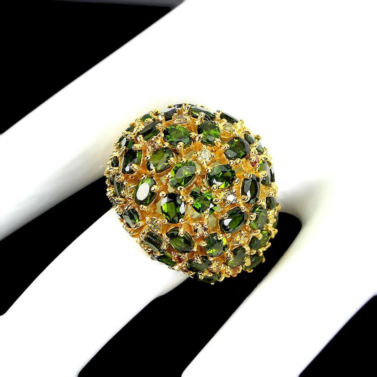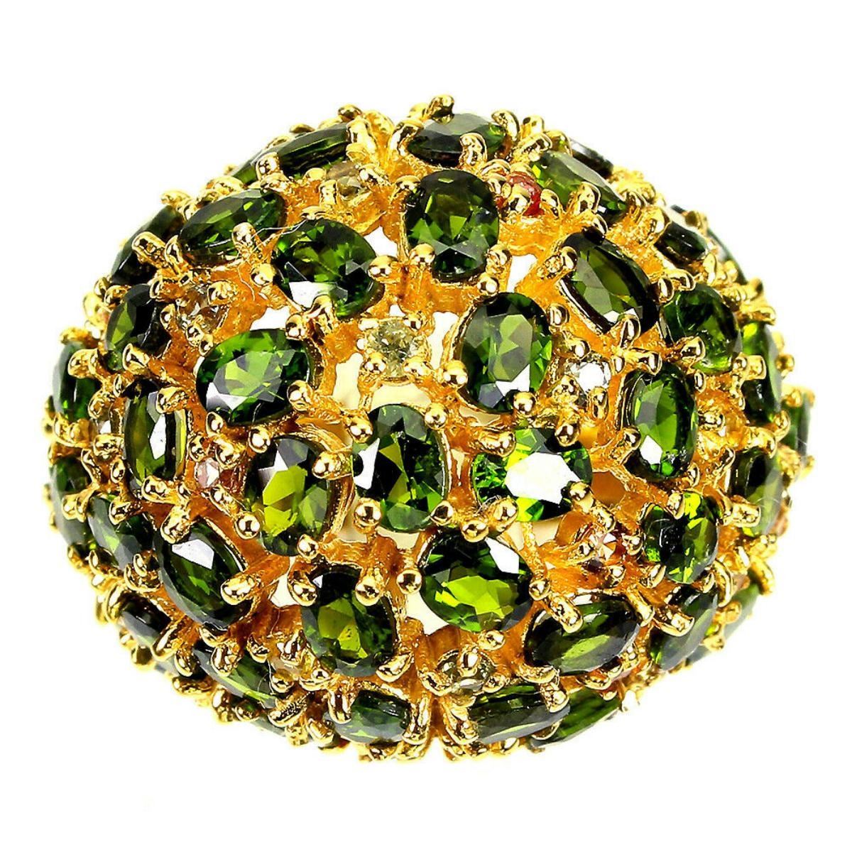 925 STERLING SILVER;PLATE-14K YELLOW GOLD;RING SIZE/resizeable-7.5;MAIN STONE-CHROME DIOPSIDE;OTHER GEMS-SAPPHIRE;TOTAL WEIGHT-13.36 GRAM (TOTAL WEIGHT OF SILVER + STONE)DIMENSION-* STONE 2.0 TO 4.0 X 3.0 MM. * RING SIZE 7.5 * FACE RING- 28.0 X 23.0 MM.;MAIN STONE SHAPE-OVAL CUT;MAIN STONE COLOR-TOP RICH GREEN;CLARITY/GRADE-IF TO VVS;TREATMENT-UNHEATED;ORIGIN-RUSSIA;