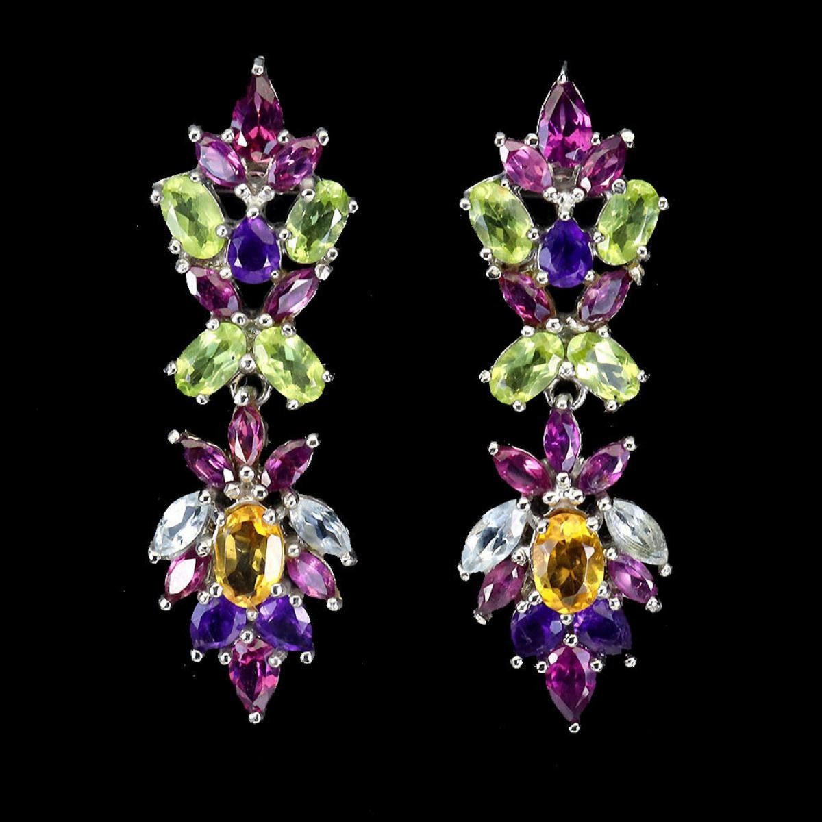 925 STERLING SILVER;PLATE-14K WHITE GOLD;MAIN STONE-CITRINE;OTHER GEMS-AMETHYST, AQUAMARINE, PERIDOT, RHODOLITE GARNET;TOTAL WEIGHT-5.57 GRAM (TOTAL WEIGHT OF SILVER + STONE);DIMENSION-* STONE 4.0 X 2.0 TO 6.0 X 4.0 MM.* FACE EARRINGS 38.0 X 12.0 MM.;MAIN STONE SHAPE-OVAL;MAIN STONE COLOR-YELLOW;CLARITY/GRADE-IF TO VVS;TREATMENT-UNHEATED;ORIGIN-BRAZIL;HARDNESS-7;