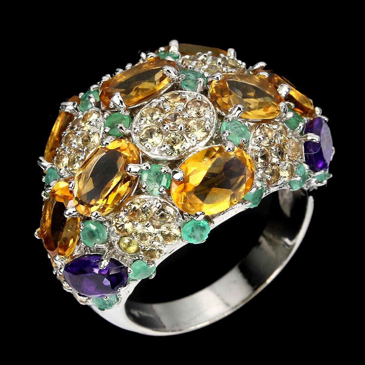 925 STERLING SILVER;PLATE-14K WHITE GOLD;RING SIZE-8(RESIZABLE);MAIN STONE-CITRINE;OTHER GEMS-AMETHYST, EMERALD, SAPPHIRE;TOTAL WEIGHT-9.47 GRAM (TOTAL WEIGHT OF SILVER + STONE);DIMENSION-* STONE 1.5 TO 7.0 X 5.0 MM. * RING SIZE 8.0 * FACE RING 26.0 X 20.0 MM.;MAIN STONE SHAPE-OVAL; MAIN STONE COLOR- GOLDEN YELLOW;CLARITY/GRADE-IF ;TREATMENT-UNHEATED;ORIGIN-BRAZIL;HARDNESS-7;