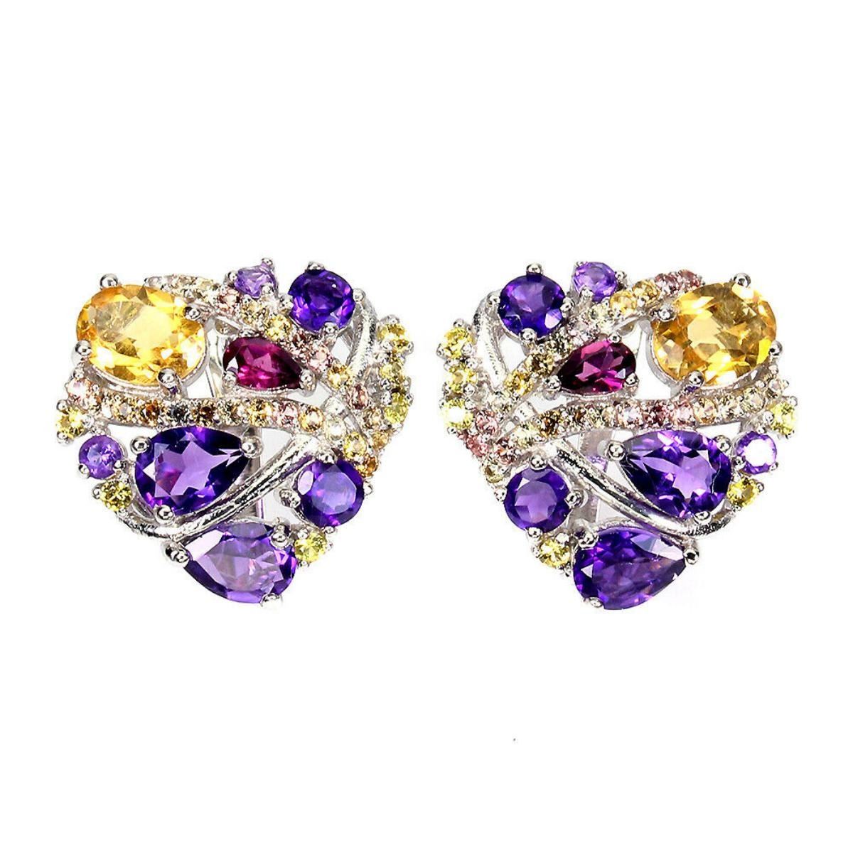 925 STERLING SILVER;PLATE-14K WHITE GOLD;MAIN STONE-CITRINE;OTHER GEMS-AMETHYST, RHODOLITE GARNET, SAPPHIRE;TOTAL WEIGHT-8.83 GRAM (TOTAL WEIGHT OF SILVER + STONE)DIMENSION-* STONE 1.5 TO 8.0 X 6.0 MM.;* FACE EARRINGS- 22.0 X 21.0 MM.;MAIN STONE SHAPE-OVAL CUT;MAIN STONE COLOR- RICH YELLOW;CLARITY/GRADE-IF TO VVS;TREATMENT-UNHEATED;ORIGIN-BRAZIL;HARDNESS-7;