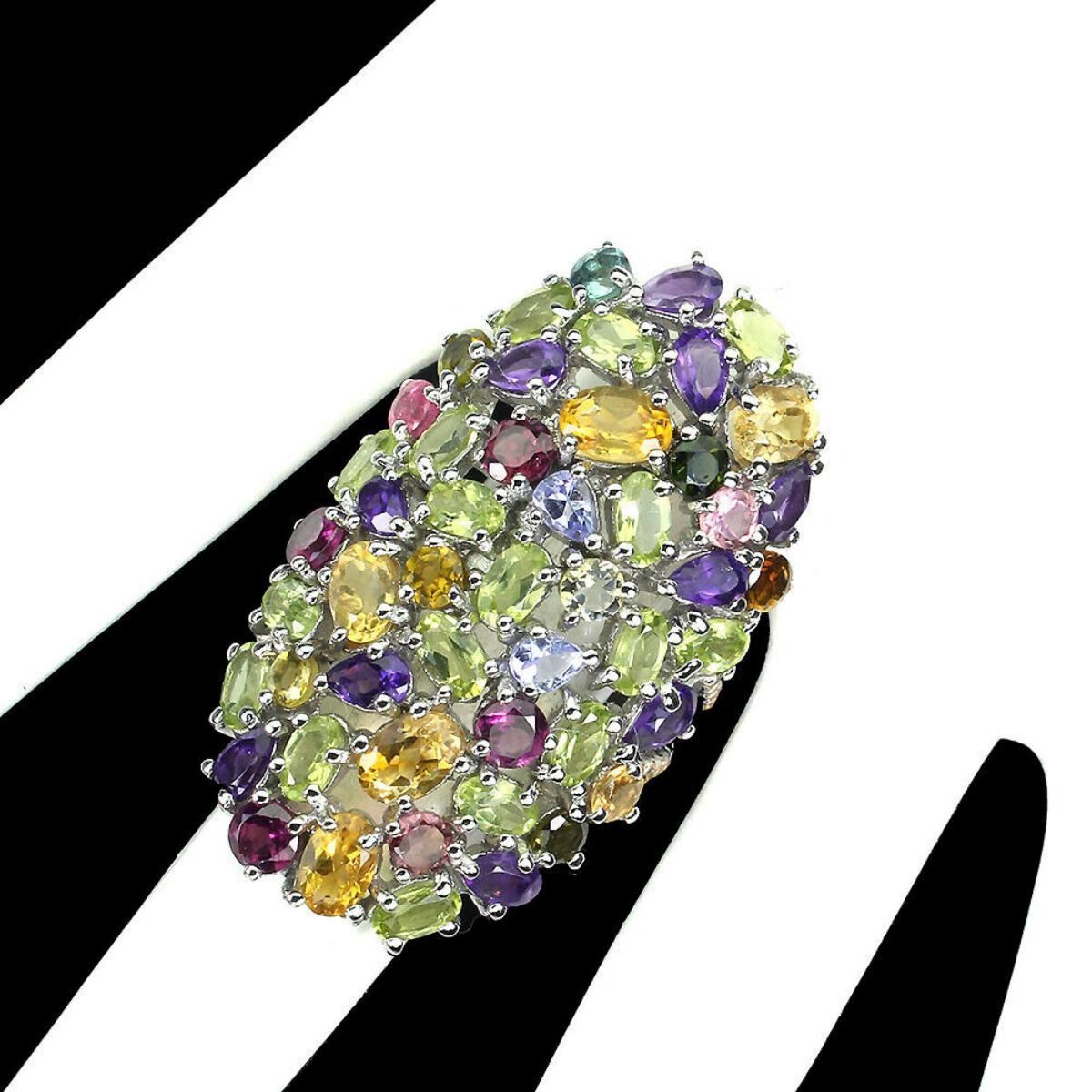 925 STERLING SILVER;PLATE-14K WHITE GOLD;RING SIZE/resizable-10;MAIN STONE--CITRINE;OTHER GEMS-AMETHYST, RHODOLITE GARNET, SAPPHIRE, TANZANITE, TOURMALINE;TOTAL WEIGHT-13.2 GRAM (TOTAL WEIGHT OF SILVER + STONE)DIMENSION-* STONE 1.5 TO 6.0 X 4.0 MM.;* FACE RING -43.0 X 24.0 MM.;MAIN STONE SHAPE-OVAL CUT;MAIN STONE COLOR-TOP RICH YELLOW;CLARITY/GRADE-IF TO VVS;TREATMENT-UNHEATED;ORIGIN-BRAZIL;HARDNESS-7;