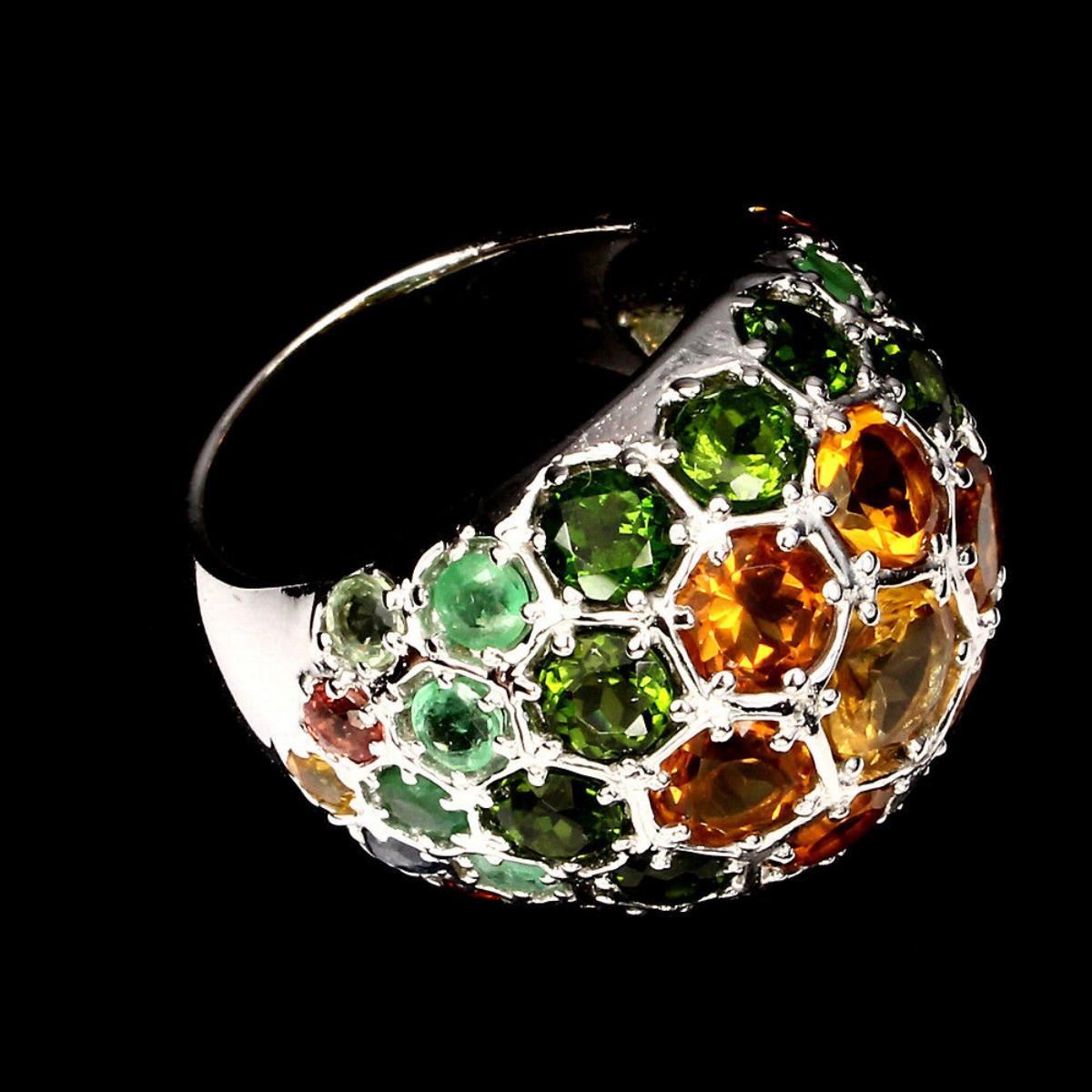 925 STERLING SILVER;PLATE14K WHITE GOLD;RING SIZE-7 (resizeable);MAIN STONECITRINE;OTHER GEMSCHROME DIOPSIDE,EMERALD,SAPPHIRE;TOTAL WEIGHT60.69 CT (TOTAL WEIGHT OF SILVER + STONE)DIMENSION* STONE 3.0 TO 6.0 MM. * RING SIZE 7.0 * FACE RING 25.0 X 20.0 MM.;MAIN STONE SHAPEROUND CUT;MAIN STONE COLORTOP RICH YELLOW;CLARITY/GRADEIF TO VVS;LUSTERGORGEOUS;TREATMENTUNHEATED;ORIGINBRAZIL;HARDNESS7.0;