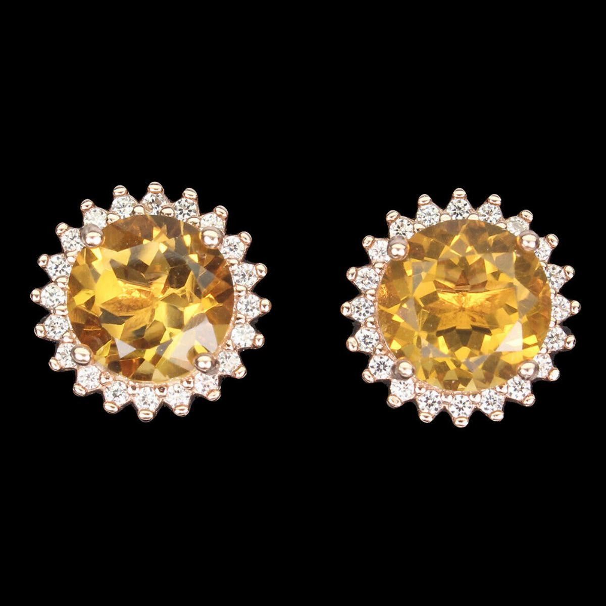 925 STERLING SILVER;PLATE-14K ROSE GOLD;MAIN STONE-CITRINE;TOTAL WEIGHT-3.49 GRAM (TOTAL WEIGHT OF SILVER + STONE)DIMENSION-* STONE 8.0 MM.* FACE EARRINGS 11.0 X 11.0 MM.;MAIN STONE SHAPE-ROUND ;MAIN STONE COLOR-YELLOW;CLARITY/GRADE-IF TO VVS;TREATMENT-UNHEATED;ORIGIN-BRAZIL;HARDNESS-7;