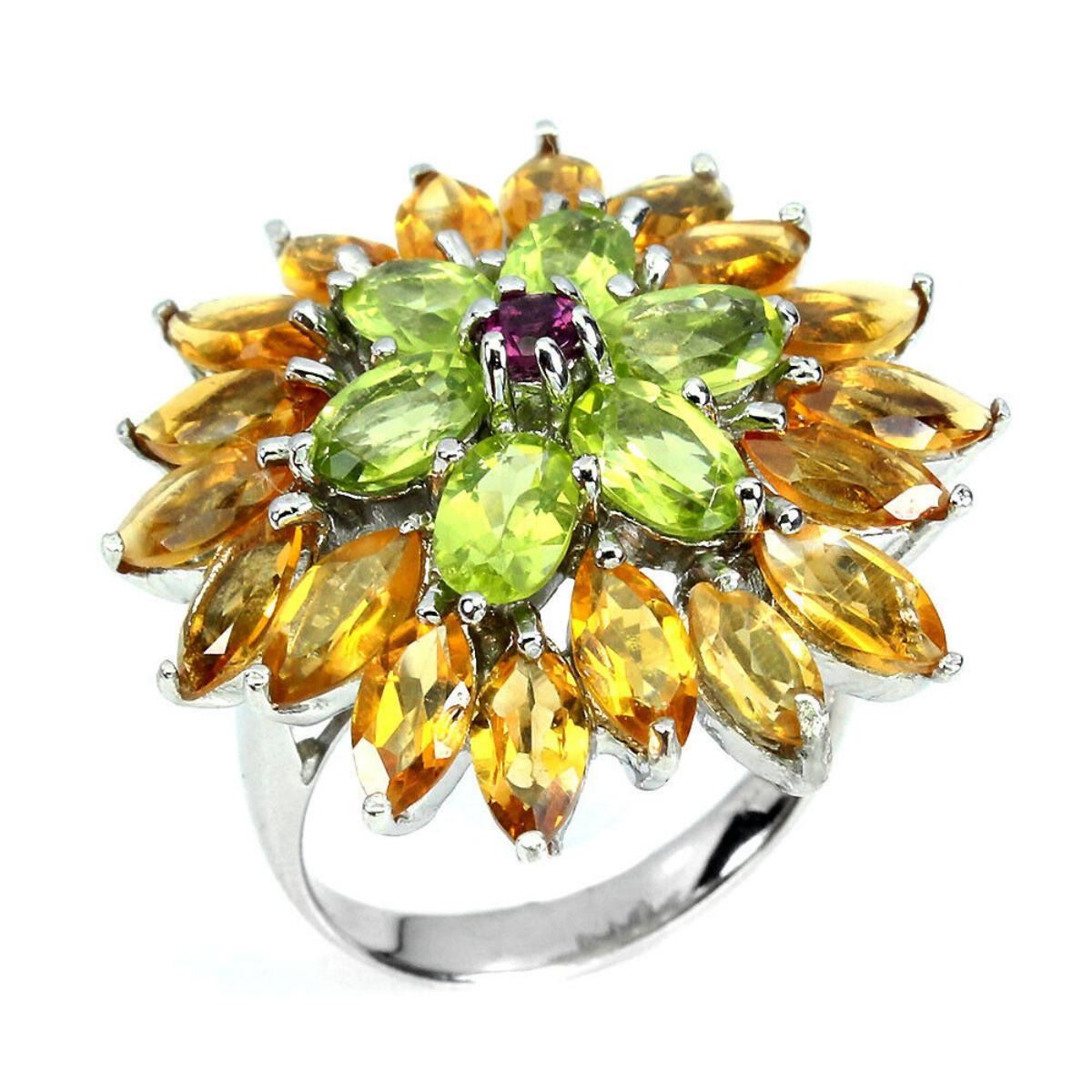 925 STERLING SILVER;PLATE14K WHITE GOLD;RING SIZE-- Resizeable - 8;MAIN STONE-CITRINE;OTHER GEMS-PERIDOT, RHODOLITE GARNET;TOTAL WEIGHT-11 GRAM (TOTAL WEIGHT OF SILVER + STONE)DIMENSION-* STONE 3.0 TO 7.0 X 3.5 MM. * RING SIZE 8.0 * FACE RING- 30.0 X 28.0 MM.;MAIN STONE SHAPE-MARQUISE CUT;MAIN STONE COLOR-YELLOW;CLARITY/GRADE-IF TO VVS;TREATMENT-UNHEATED;ORIGIN-BRAZIL;HARDNESS-7;