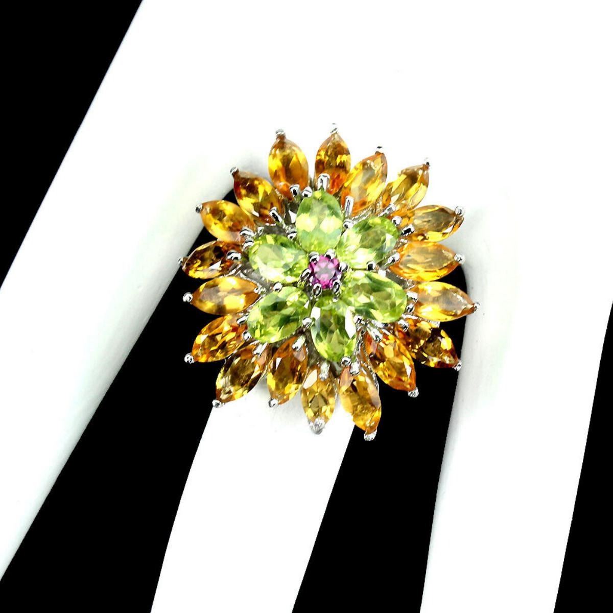 925 STERLING SILVER;PLATE14K WHITE GOLD;RING SIZE-- Resizeable - 8;MAIN STONE-CITRINE;OTHER GEMS-PERIDOT, RHODOLITE GARNET;TOTAL WEIGHT-11 GRAM (TOTAL WEIGHT OF SILVER + STONE)DIMENSION-* STONE 3.0 TO 7.0 X 3.5 MM. * RING SIZE 8.0 * FACE RING- 30.0 X 28.0 MM.;MAIN STONE SHAPE-MARQUISE CUT;MAIN STONE COLOR-YELLOW;CLARITY/GRADE-IF TO VVS;TREATMENT-UNHEATED;ORIGIN-BRAZIL;HARDNESS-7;