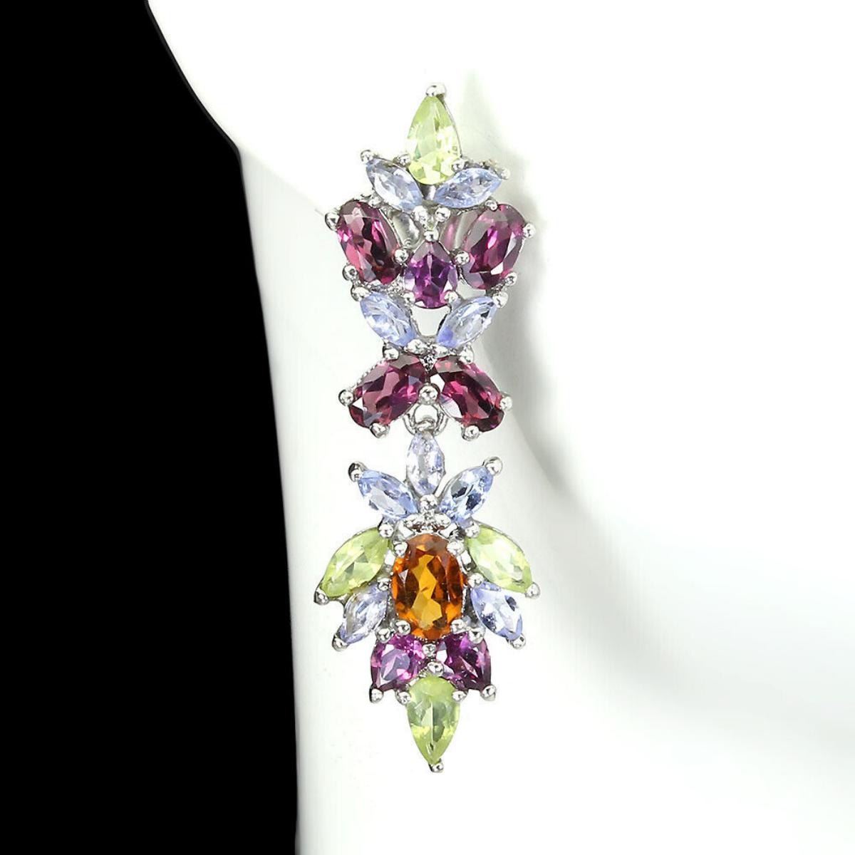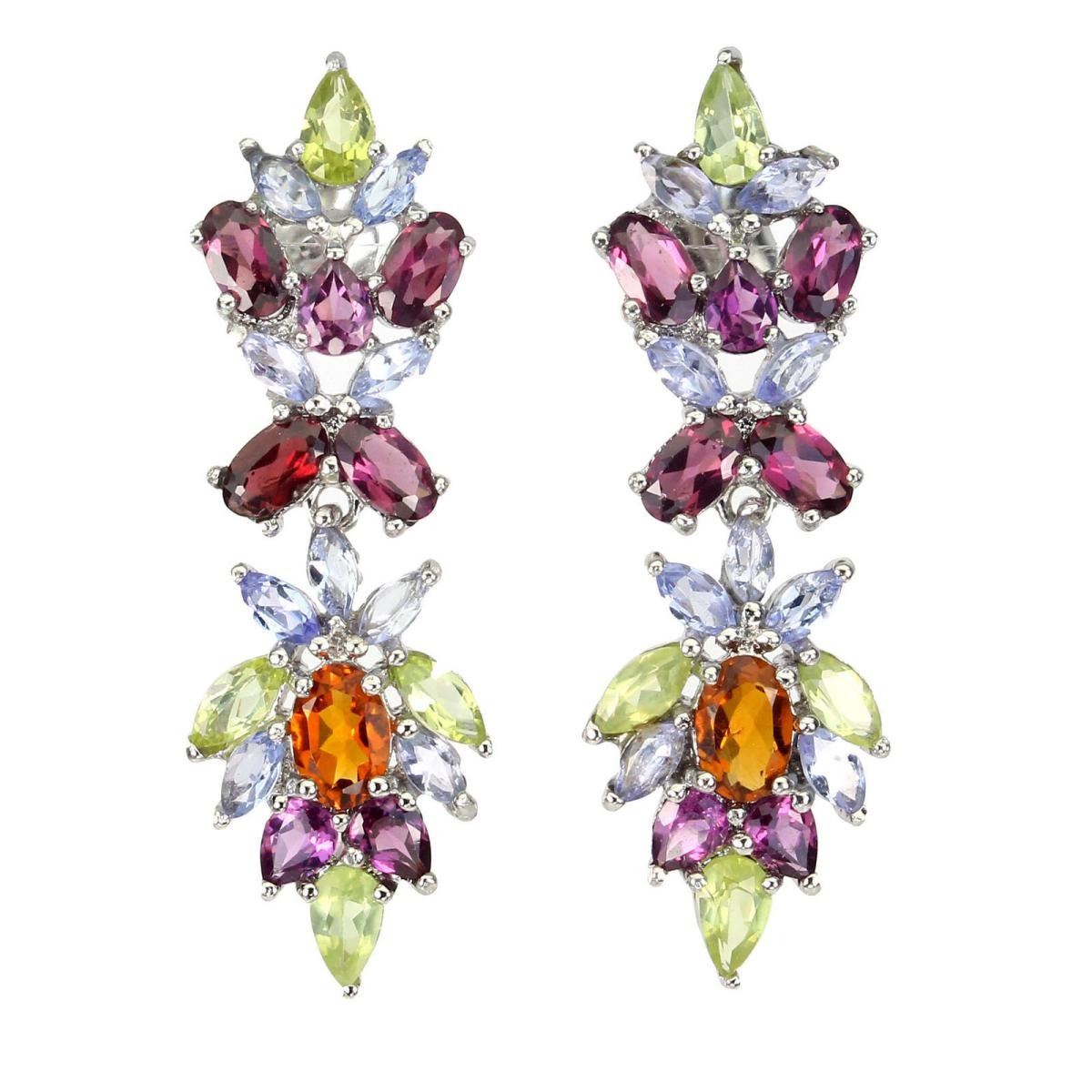 925 STERLING SILVER;PLATE-14K WHITE GOLD;MAIN STONE-CITRINE;OTHER GEMS-PERIDOT, RHODOLITE GARNET, TANZANITE;TOTAL WEIGHT-5.53 GRAM (TOTAL WEIGHT OF SILVER + STONE);DIMENSION-* STONE 4.0 X2 .0 TO 6.0 X 4.0 MM.* FACE EARRINGS 38.0 X 13.0 MM.;MAIN STONE SHAPE-OVAL ;MAIN STONE COLOR - YELLOW;CLARITY/GRADE-IF TO VVS;TREATMENT-UNHEATED;ORIGIN-BRAZIL;HARDNESS-7;