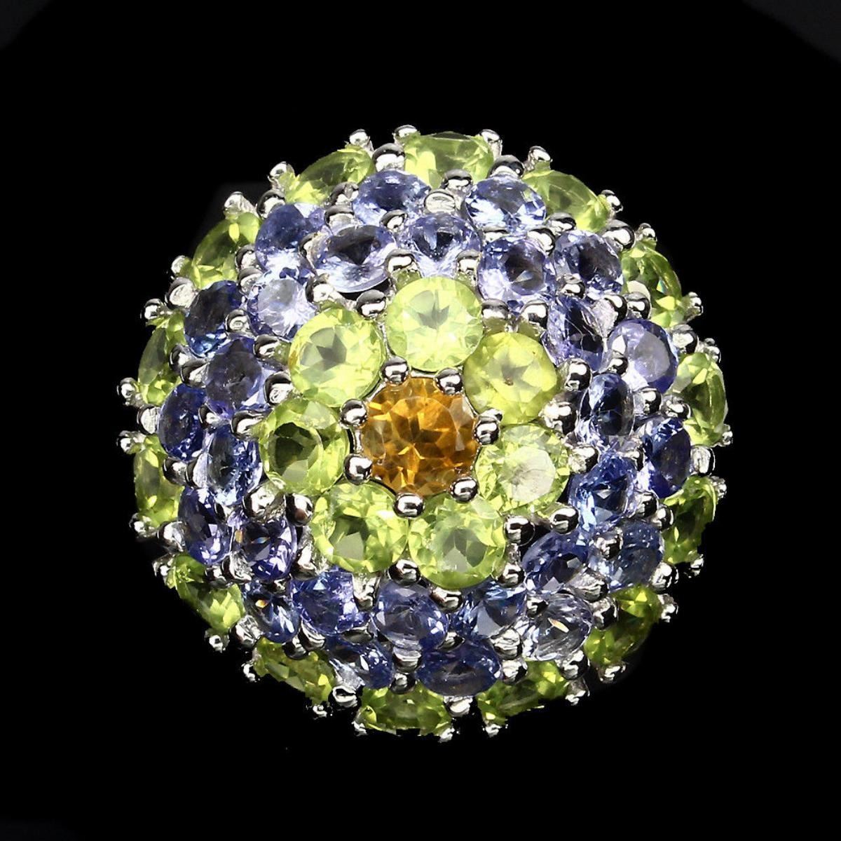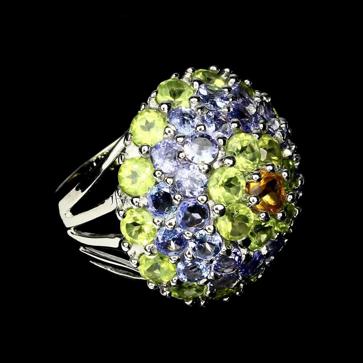 925 STERLING SILVER;PLATE14K WHITE GOLD;RING SIZE8.5(resizeable)MAIN STONECITRINE;OTHER GEMSPERIDOT,TANZANITE;TOTAL WEIGHT58.20 CT (TOTAL WEIGHT OF SILVER + STONE)DIMENSION* STONE 3.5 TO 5.0 MM. * RING SIZE 8.5 * FACE RING 26.0 MM.;MAIN STONE SHAPEROUND CUT;MAIN STONE COLORTOP RICH YELLOW;CLARITY/GRADEIF TO VVS;LUSTEREXQUISITE;TREATMENTUNHEATED;ORIGINBRAZIL;HARDNESS6.5 - 7.5;