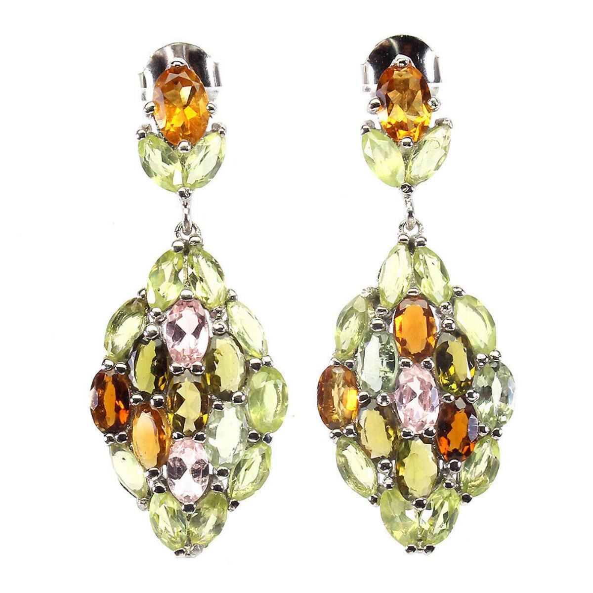 925 STERLING SILVER;PLATE-14K WHITE GOLD;MAIN STONE-CITRINE;OTHER GEMS-PERIDOT, TOURMALINE;TOTAL WEIGHT-5.7 GRAM (TOTAL WEIGHT OF SILVER + STONE);DIMENSION-* STONE 5.0 X 2.5 TO 6.0 X 4.0 MM.* FACE EARRINGS 36.0 X 15.0 MM.;MAIN STONE SHAPE-OVAL;MAIN STONE COLOR-YELLOW;CLARITY/GRADE-IF TO VVS;TREATMENT-UNHEATED;ORIGIN-BRAZIL;HARDNESS-7;