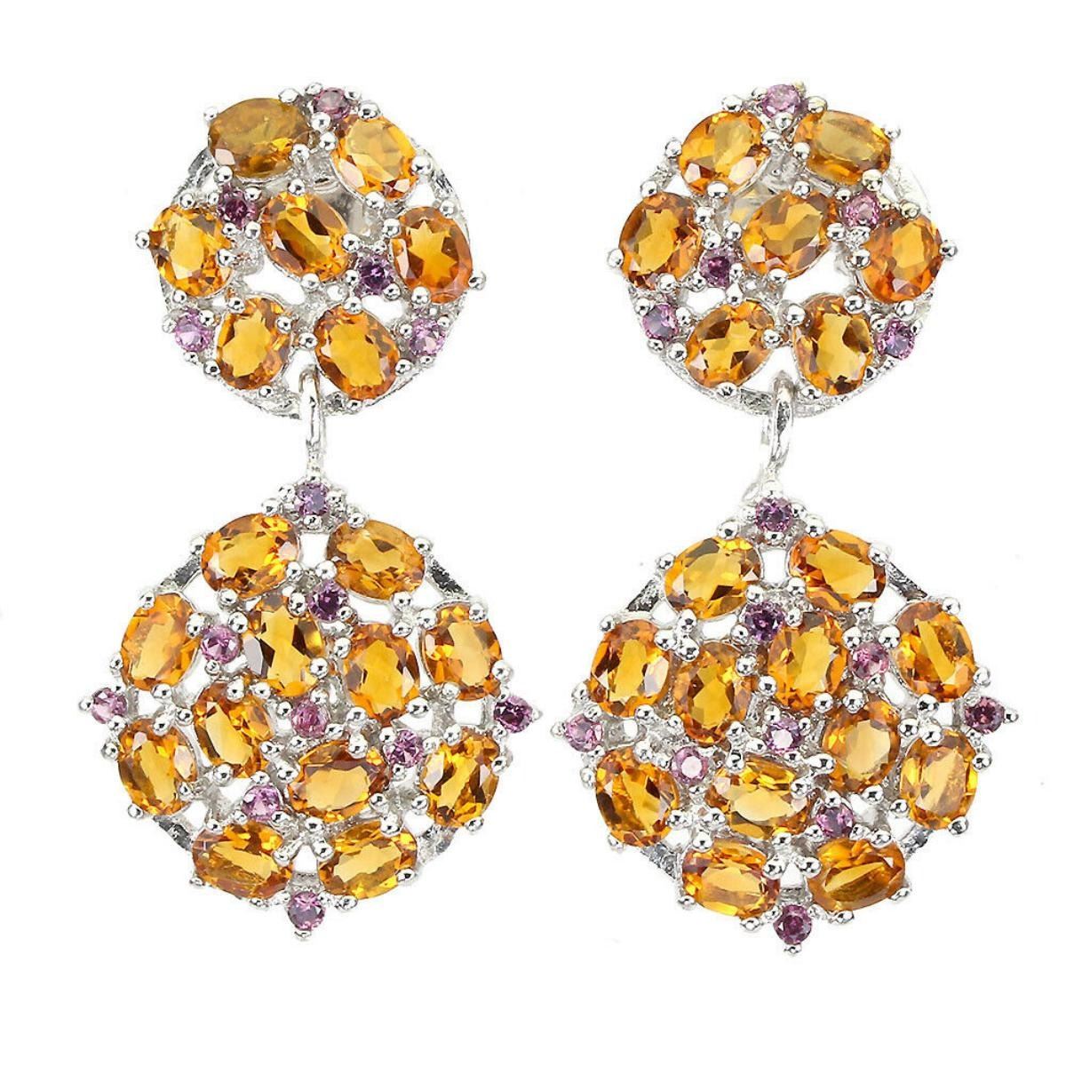 925 STERLING SILVER;PLATE-14K WHITE GOLD;MAIN STONE-CITRINE;OTHER GEMS-RHODOLITE GARNET;TOTAL WEIGHT-7.44 GRAM (TOTAL WEIGHT OF SILVER + STONE);DIMENSION-* STONE 1.0 TO 4.0 X 3.0 MM.* FACE EARRINGS 35.0 X 19.0 MM.;MAIN STONE SHAPE-OVAL CUT;MAIN STONE COLOR-YELLOW;CLARITY/GRADE-IF TO VVS;TREATMENT-UNHEATED;ORIGIN-BRAZIL;HARDNESS-7;