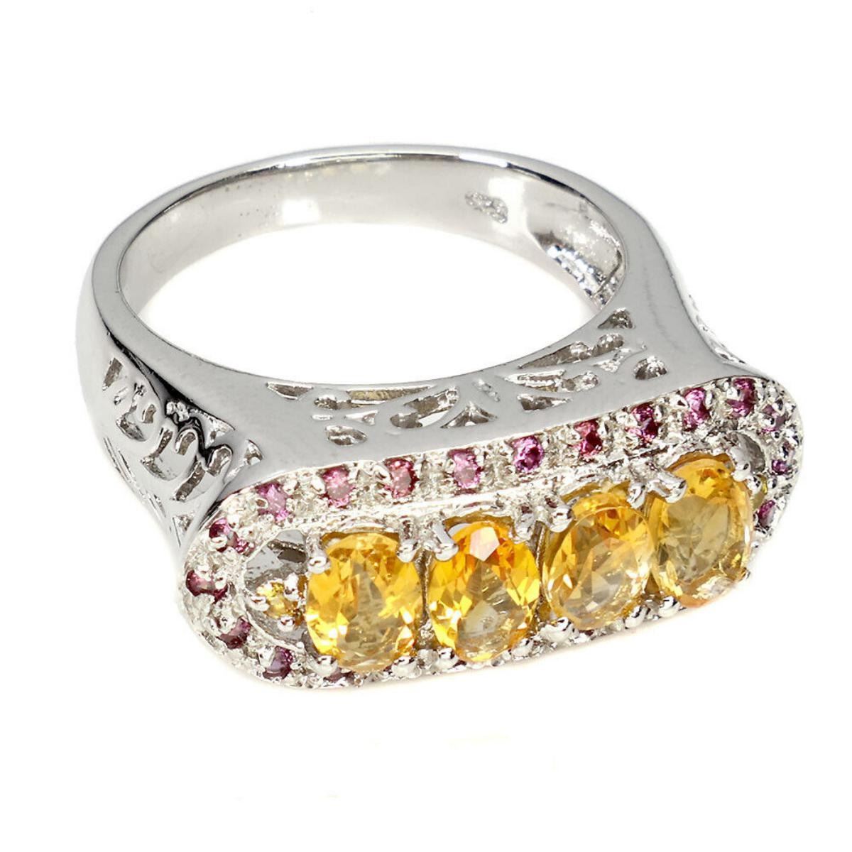 925 STERLING SILVER;PLATE-14K WHITE GOLD;RING SIZE/resizable-9;MAIN STONE-CITRINE;OTHER GEMS-RHODOLITE GARNET, SAPPHIRE;TOTAL WEIGHT-6.15 GRAM (TOTAL WEIGHT OF SILVER + STONE)DIMENSION-* STONE 1.0 TO 6.0 X 4.0 MM.;* FACE RING -24.0 X 10.0 MM.;MAIN STONE SHAPE-OVAL CUT;MAIN STONE COLOR-RICH YELLOW;CLARITY/GRADE-IF TO VVS;TREATMENT-UNHEATED;ORIGIN-BRAZIL;HARDNESS-7;