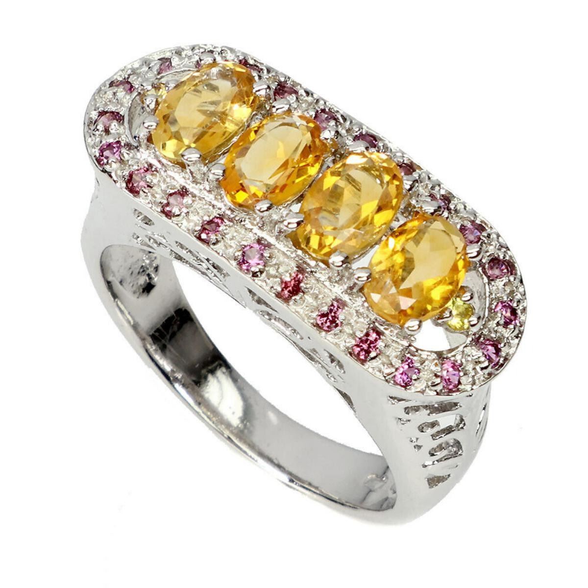 925 STERLING SILVER;PLATE-14K WHITE GOLD;RING SIZE/resizable-9;MAIN STONE-CITRINE;OTHER GEMS-RHODOLITE GARNET, SAPPHIRE;TOTAL WEIGHT-6.15 GRAM (TOTAL WEIGHT OF SILVER + STONE)DIMENSION-* STONE 1.0 TO 6.0 X 4.0 MM.;* FACE RING -24.0 X 10.0 MM.;MAIN STONE SHAPE-OVAL CUT;MAIN STONE COLOR-RICH YELLOW;CLARITY/GRADE-IF TO VVS;TREATMENT-UNHEATED;ORIGIN-BRAZIL;HARDNESS-7;