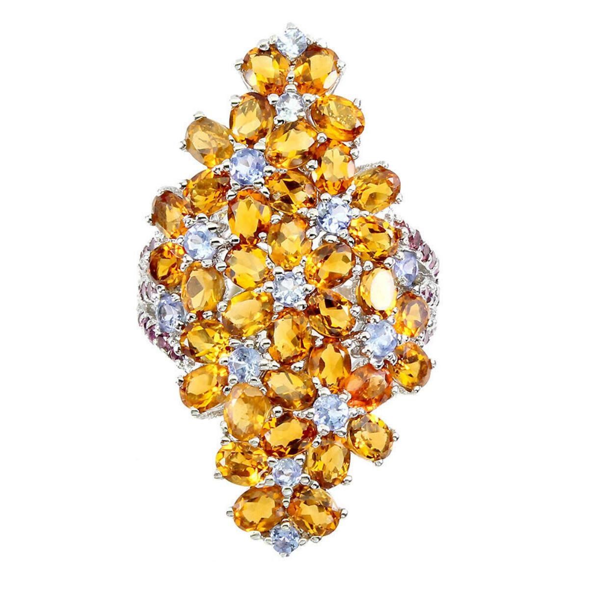 925 STERLING SILVER;PLATE-14K WHITE GOLDRING SIZE/Resizable-8;MAIN STONE-CITRINE;OTHER GEMS-RHODOLITE GARNET, TANZANITE;TOTAL WEIGHT-7.14 GRAM (TOTAL WEIGHT OF SILVER + STONE)DIMENSION-* STONE 1.5 TO 4.0 X 3.0 MM. * RING SIZE 8.0 * FACE RING- 38.0 X 23.0 MM.;MAIN STONE SHAPE-OVAL CUT;MAIN STONE COLOR- ORANGE;CLARITY/GRADE-IF TO VVS;TREATMENT-UNHEATED;ORIGIN-BRAZIL;HARDNESS-7;