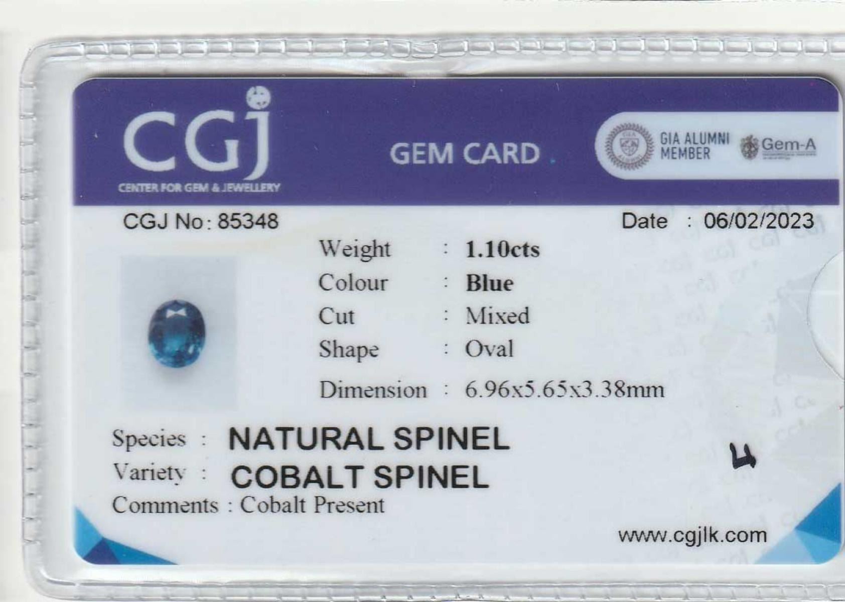 Natural Oval Cobalt Blue Spinel 1.10 Cts- Untreated; Size - 6.96 x 5.65 x 3.38MM; eye clean; Completely untreated ; Origin - Vietnam;
