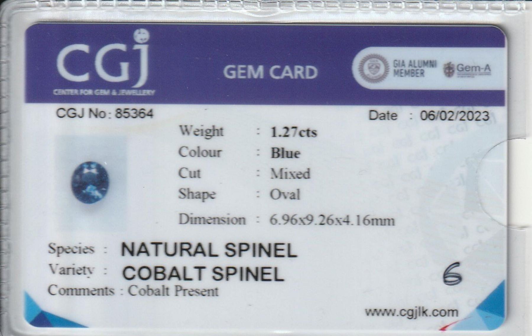 Natural Oval Cobalt Blue Spinel 1.27 Cts- Untreated; Size - 6.96 x MM; eye clean; Completely untreated ; Origin - Vietnam;