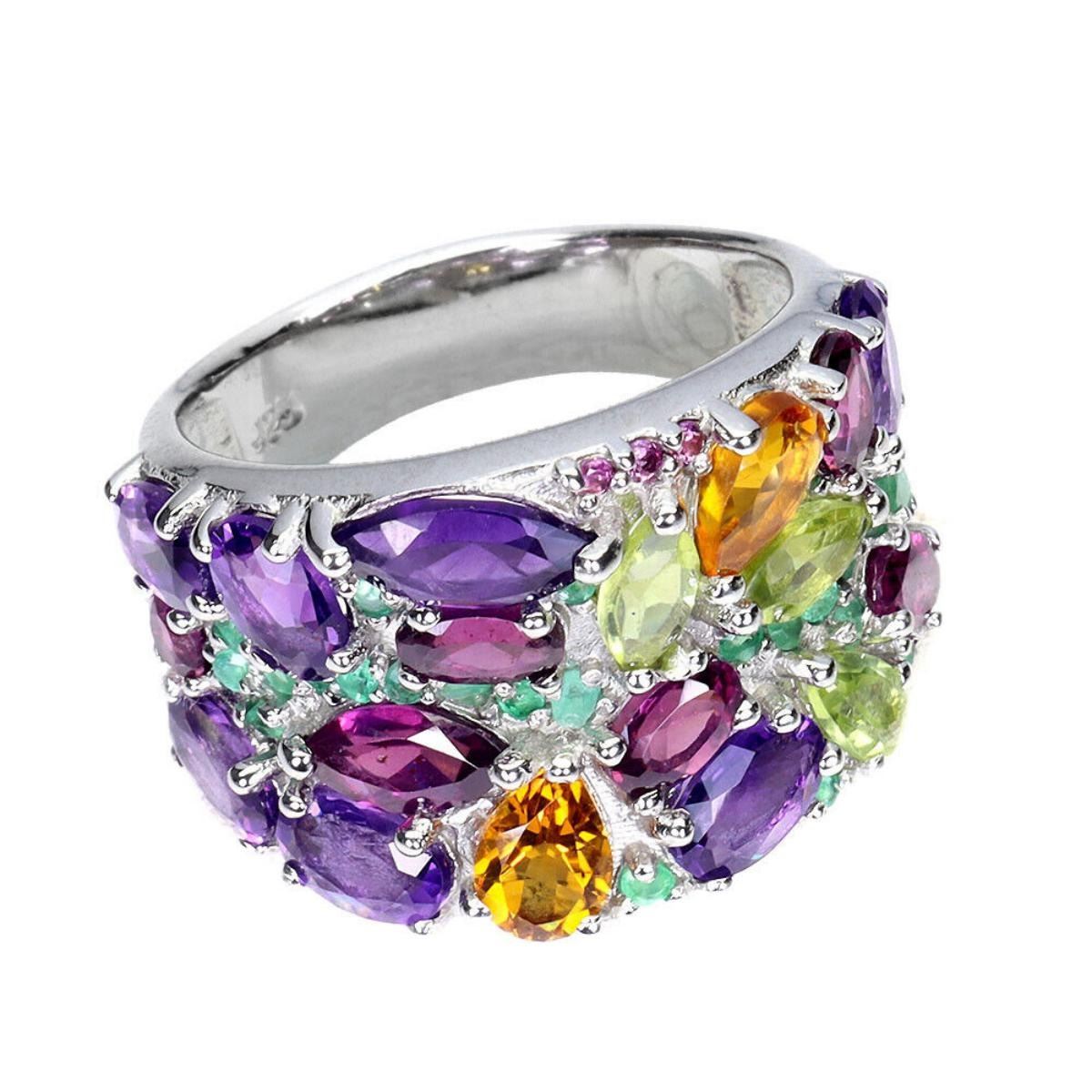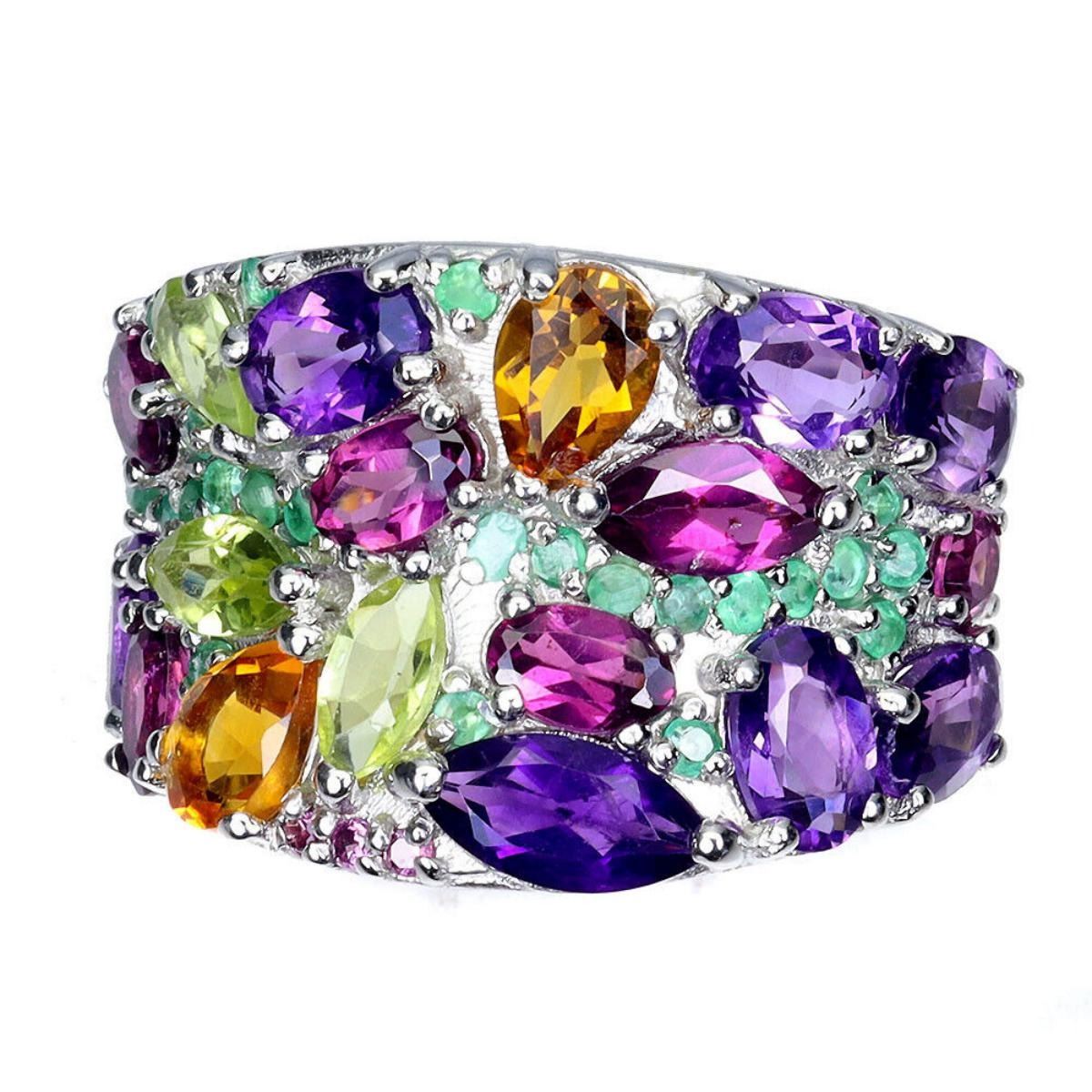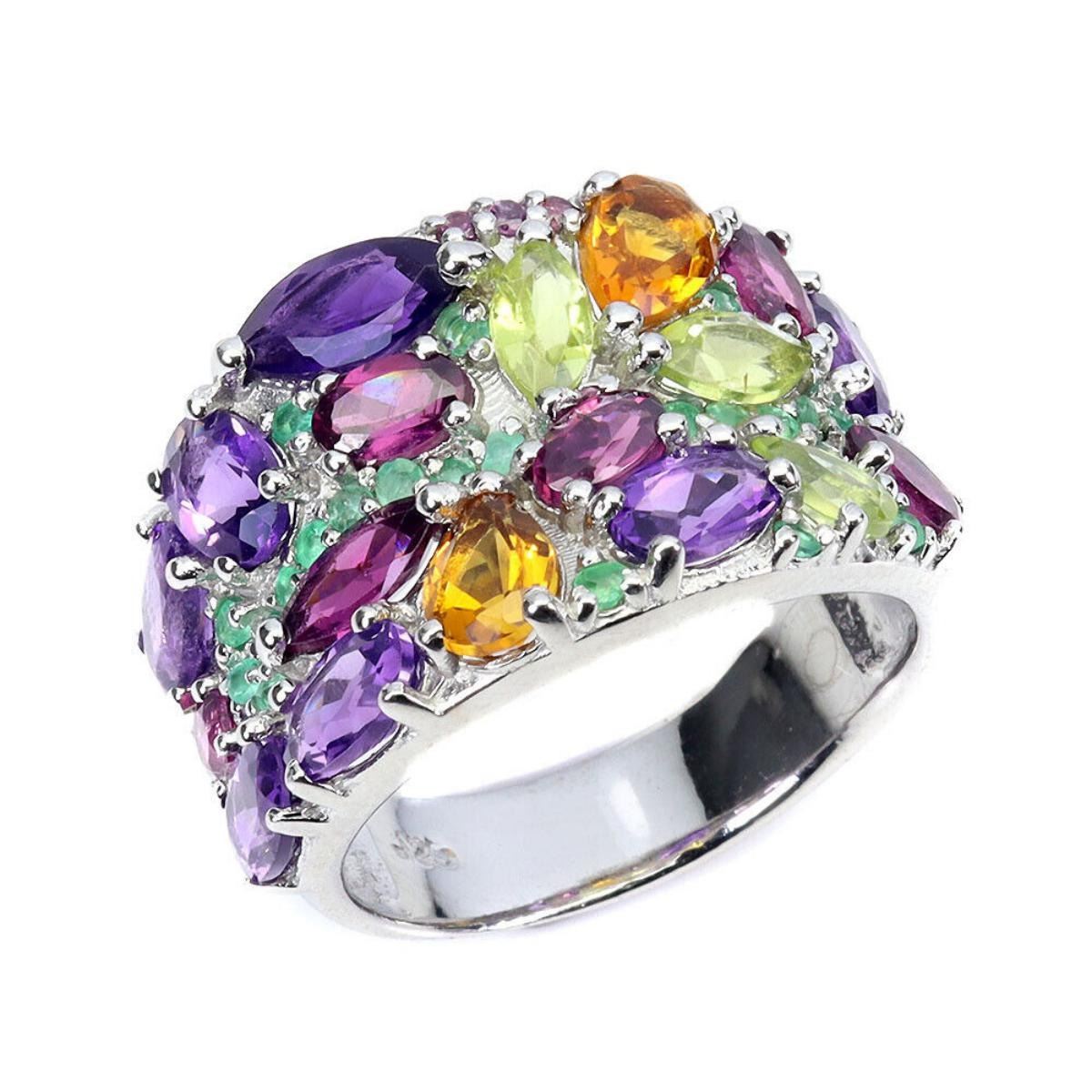 925 STERLING SILVER;PLATE-14K WHITE GOLD;RING SIZE/resizable-9;MAIN STONE-AMETHYST;OTHER GEMS-CITRINE, EMERALD, PERIDOT, RHODOLITE GARNET;TOTAL WEIGHT-7.81 GRAM (TOTAL WEIGHT OF SILVER + STONE)DIMENSION-* STONE 1.5 TO 8.0 X 4.0 MM. * RING SIZE 9.0 * FACE RING -24.0 X 17.0 MM.;MAIN STONE SHAPE-MARQUISE CUT;MAIN STONE COLOR- PURPLE;CLARITY/GRADE-IF TO VVS;TREATMENT-UNHEATED;ORIGIN-URUGUAY;HARDNESS-7;