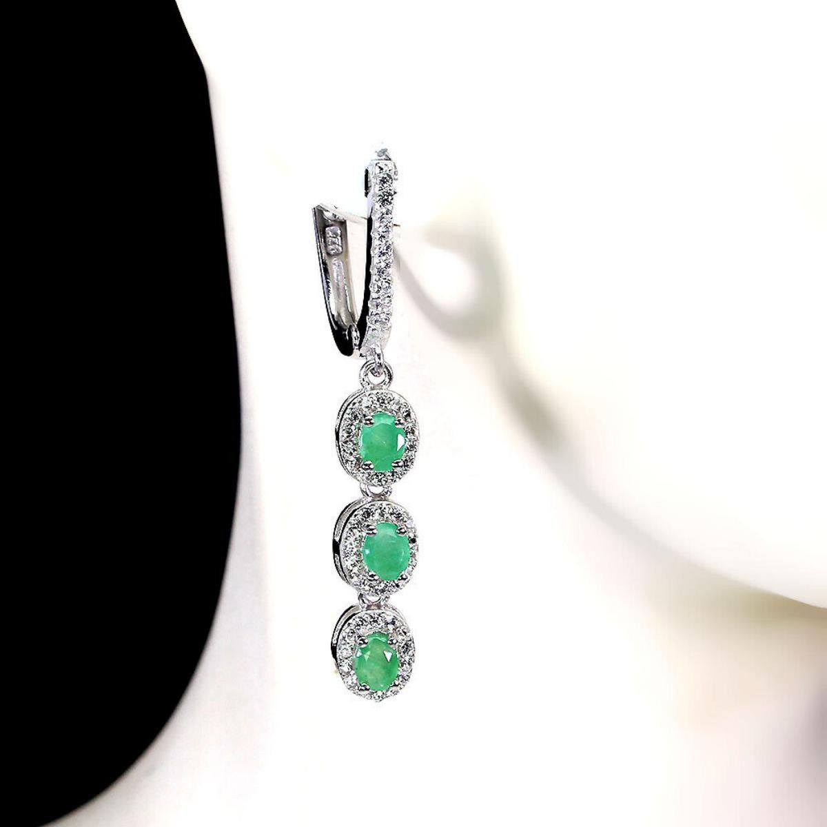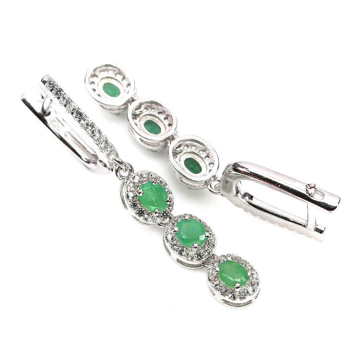 925 STERLING SILVER;PLATE-14K WHITE GOLD;MAIN STONE-EMERALD;TOTAL WEIGHT-5.22 GRAM (TOTAL WEIGHT OF SILVER + STONE)DIMENSION-* STONE 1.0 TO 4.0 X 3.0 MM. * FACE EARRINGS 39.0 X 6.0 MM.MAIN STONE SHAPE-OVAL CUT;MAIN STONE COLOR-TOP RICH GREEN;TREATMENT-UNHEATED;ORIGIN-Colombia;HARDNESS-7.5 - 8.0;