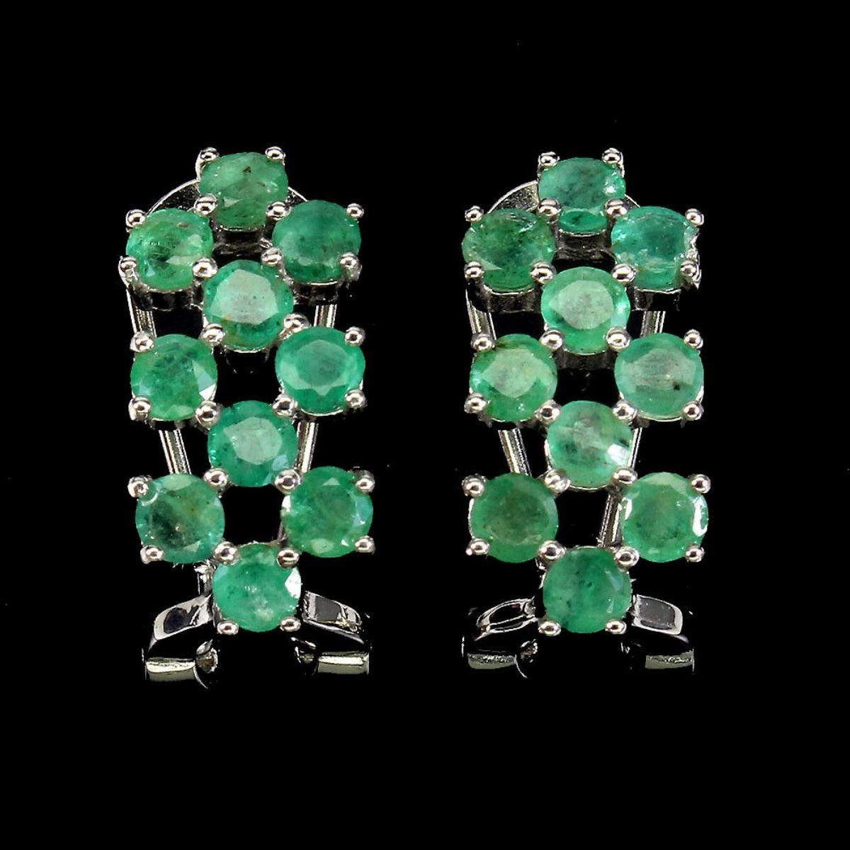 925 STERLING SILVER;PLATE-14K WHITE GOLD;MAIN STONE-EMERALD;TOTAL WEIGHT-4.16 GRAM (TOTAL WEIGHT OF SILVER + STONE);DIMENSION-* STONE 3.0 MM.* FACE EARRINGS 18.0 X 9.0 MM.;MAIN STONE SHAPE-ROUND; MAIN STONE COLOR-GREEN;TREATMENT-UNHEATED;ORIGIN-COLOMBIA;HARDNESS-7.5 - 8.0;
