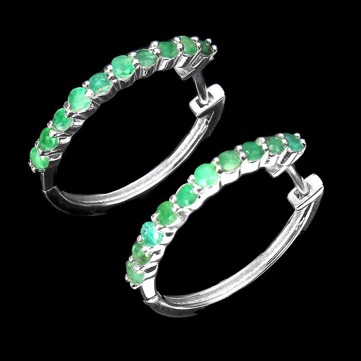925 STERLING SILVER;PLATE-14K WHITE GOLD;MAIN STONE-EMERALD;TOTAL WEIGHT-3.33 GRAM (TOTAL WEIGHT OF SILVER + STONE)DIMENSION-* STONE 2.5 MM.;* FACE EARRINGS- 22.0 X 3.0 MM.;MAIN STONE SHAPE-ROUND CUT;MAIN STONE COLOR- GREEN;TREATMENT-UNHEATED;ORIGIN-COLOMBIA;HARDNESS-7.5 - 8.0;