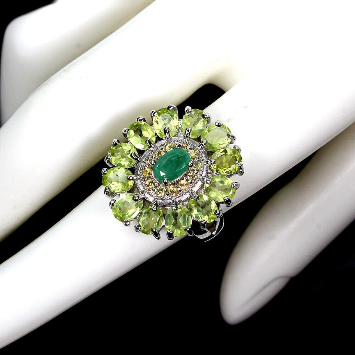 925 STERLING SILVER;PLATE-14K WHITE GOLD;RING SIZE-7.5(RESIZABLE);MAIN STONE-EMERALD;OTHER GEMS-8.71 GRAM (TOTAL WEIGHT OF SILVER + STONE);DIMENSION-* STONE 1.5 TO 6.0 X 4.0 MM. * RING SIZE 7.5 * FACE RING 23.0 X 21.0 MM.;MAIN STONE SHAPE-OVAL; MAIN STONE COLOR-GREEN;TREATMENT-UNHEATED;ORIGIN-COLOMBIA;HARDNESS-7.5 - 8.0;
