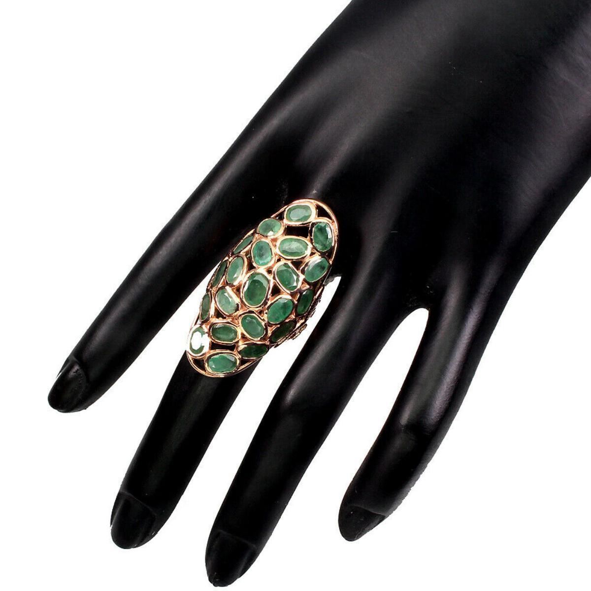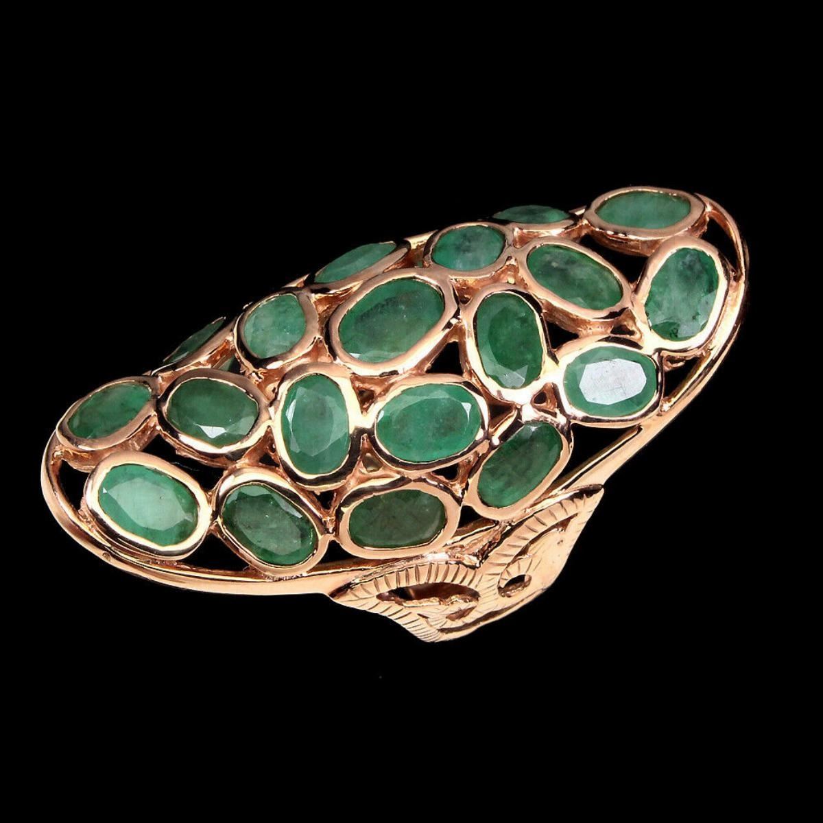925 STERLING SILVER;PLATE-14K ROSE GOLD;RING SIZE - 8(resizeable);MAIN STONE-EMERALD;TOTAL WEIGHT-10.92 GRAM (TOTAL WEIGHT OF SILVER + STONE)DIMENSION* STONE 6.0 X 4.0 TO 7.0 X 5.0 MM. * RING SIZE 8.0 * FACE RING 43.0 X 22.0 MM.;MAIN STONE SHAPE-OVAL CUT;MAIN STONE COLOR- GREEN;TREATMENT-UNHEATED;ORIGIN-Colombia;HARDNESS-7.5 - 8.0