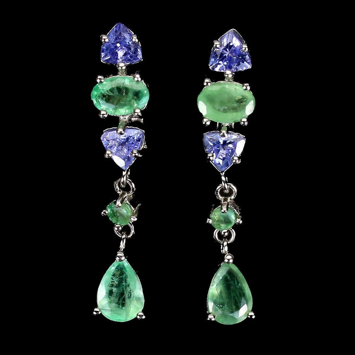 925 STERLING SILVER;PLATE-14K WHITE GOLD;MAIN STONE-EMERALD;OTHER GEMS-TANZANITE;TOTAL WEIGHT-4.94 GRAM (TOTAL WEIGHT OF SILVER + STONE);DIMENSION- * STONE 3.0 TO 7.0 X 5.0 MM.* FACE EARRINGS 33.0 X 6.0 MM.;MAIN STONE SHAPE-PEAR;MAIN STONE COLOR-GREEN;TREATMENT-UNHEATED;ORIGIN-BRAZIL;HARDNESS-7.5 - 8.0;