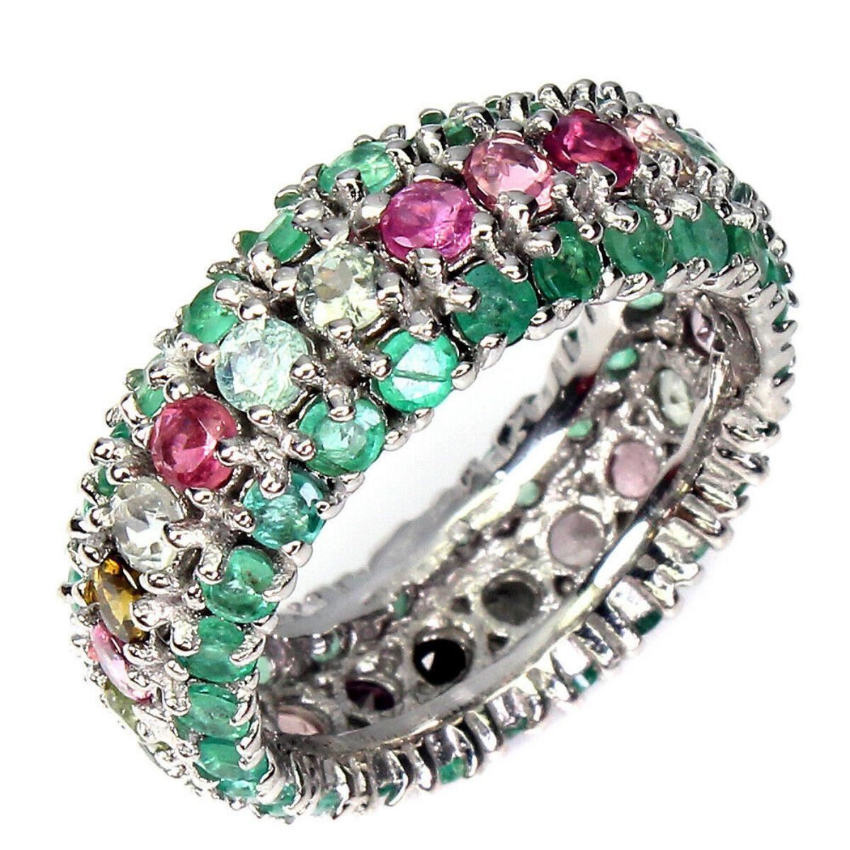 925 STERLING SILVER;PLATE-14K WHITE GOLD;RING SIZE-6.5;MAIN STONE-TOURMALINE;OTHER GEMS-EMERALD;TOTAL WEIGHT-4.35 GRAM (TOTAL WEIGHT OF SILVER + STONE)DIMENSION-* STONE 2.0 TO 2.5 MM. * RING SIZE 6.5 * FACE RING 23.0 X 8.0 MM.;MAIN STONE SHAPE-ROUND CUT;MAIN STONE COLOR-MULTI-COLOR;CLARITY/GRADE-IF TO VVS;TREATMENT-UNHEATED;ORIGIN-Colombia;HARDNESS-7.0-7.5;