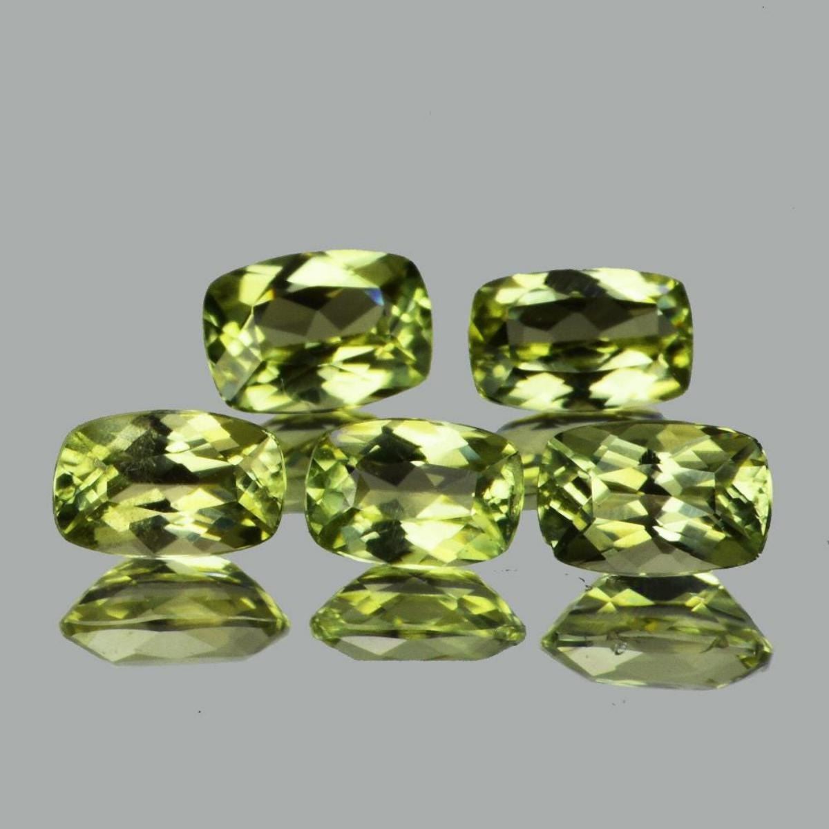 Natural Diaspore; WEIGHT : 2.30 cts; SHAPE : Rectangle; SIZE ( L x W x D ) : 5.40-5.70 x 3.70-4.20 mm; QUANTITY : 5 pieces ; COLOR : Golden Green to Orange Red; CLARITY : Flawless-VVS1; ORIGIN : Turkey; HARDNESS : 6; LUSTER : AAA Diamantine Sparkling (GUARANTEE!!) TREATMENT : 100% Natural Unheated;