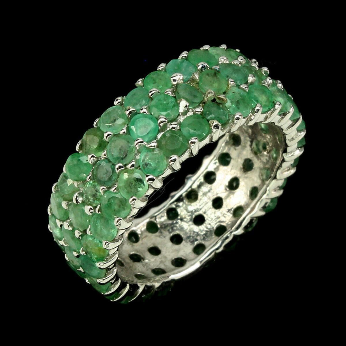 925 STERLING SILVER;PLATE.....14K WHITE GOLD;RING SIZE-8.5;MAIN STONEEMERALDOTHER GEMSTOTAL WEIGHT27.98 CT (TOTAL WEIGHT OF SILVER + STONE)DIMENSION* STONE 2.5 MM. * RING SIZE 8.5 * FACE RING 24.0 X 8.0 MM.;MAIN STONE COLORTOP RICH GREEN;TREATMENTUNHEATED;HARDNESS7.5 - 8.0