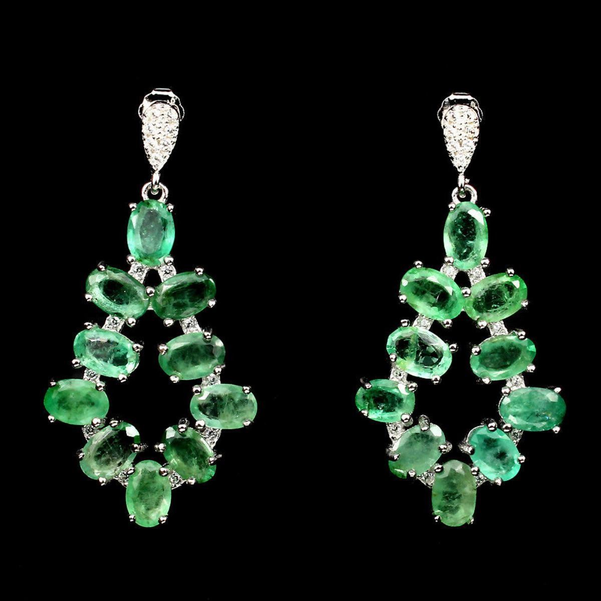 925 STERLING SILVER; PLATE .....14K WHITE GOLD; MAIN STONE -EMERALD; OTHER GEMS CUBIC ZIRCONIA; TOTAL WEIGHT 35.01 CT (TOTAL WEIGHT OF SILVER + STONE) DIMENSION * STONE 6.0 X 4.0 MM. * CZ 1.0 MM. * FACE EARRINGS 38.0 X 19.0 MM. MAIN STONE SHAPE OVAL CUT MAIN STONE COLOR TOP RICH GREEN CLARITY/GRADE TRANSPARENT LUSTER EXQUISITE TREATMENT UNHEATED ORIGIN Columbia