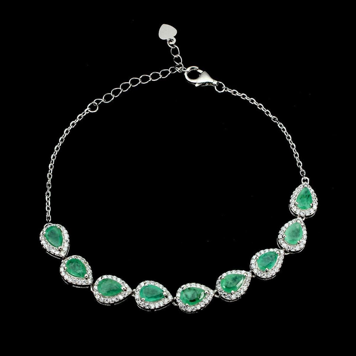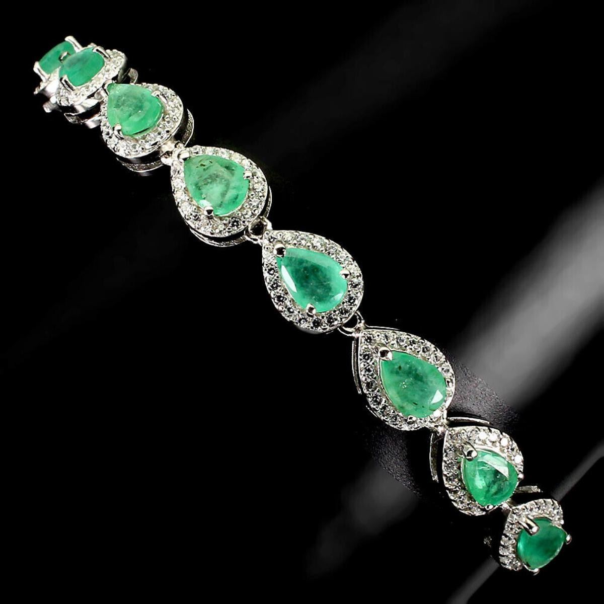 925 STERLING SILVER;PLATE-14K WHITE GOLD;LENGTH (INCHES)-7;MAIN STONE-EMERALD;TOTAL WEIGHT-7.23 GRAM (TOTAL WEIGHT OF SILVER + STONE);DIMENSION -* STONE 6.0 X 4.0 MM.* LENGTH 7.0 INCHES.* FACE BRACELET 90.0 X 7.0 MM.;MAIN STONE SHAPE-PEAR; MAIN STONE COLOR-GREEN;TREATMENT-UNHEATED;ORIGIN-COLUMBIA;HARDNESS-7.5 - 8.0;