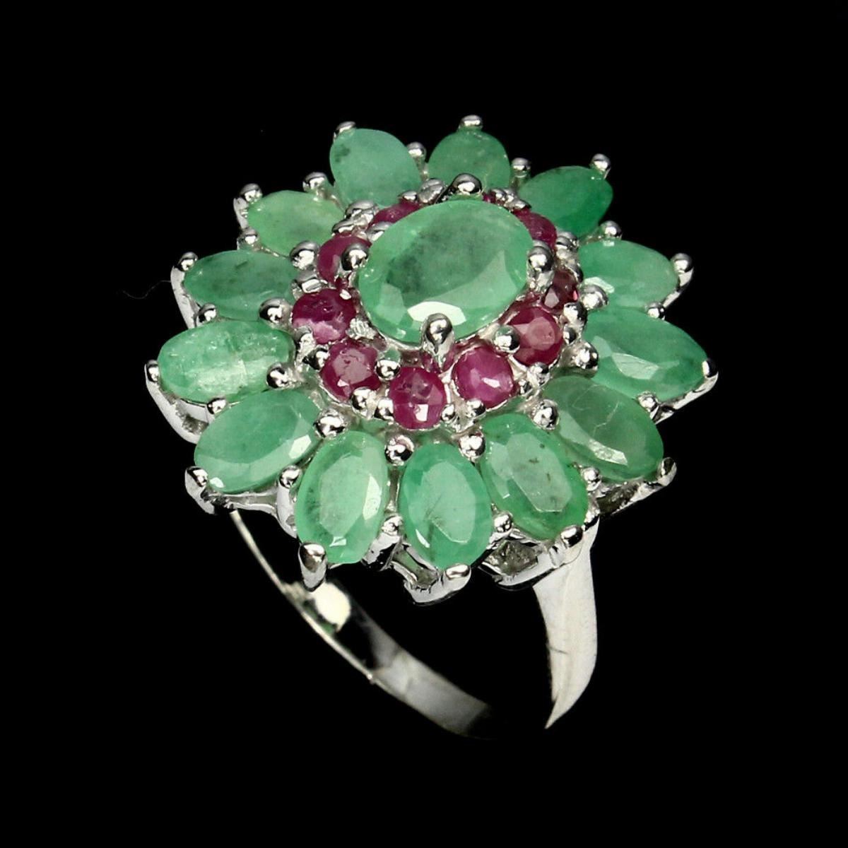 925 STERLING SILVER;PLATE14K WHITE GOLD;RING SIZE8.5(resizeable)MAIN STONEEMERALD;OTHER GEMSRUBY;TOTAL WEIGHT32.43 CT (TOTAL WEIGHT OF SILVER + STONE)DIMENSION* STONE 2.0 TO 7.0 X 5.0 MM. * FACE RING 21.0 X 19.0 MM.MAIN STONE SHAPEOVAL CUT;MAIN STONE COLOR -GREEN;TREATMENTUNHEATEDORIGIN-Columbia;HARDNESS7.5 - 9.0