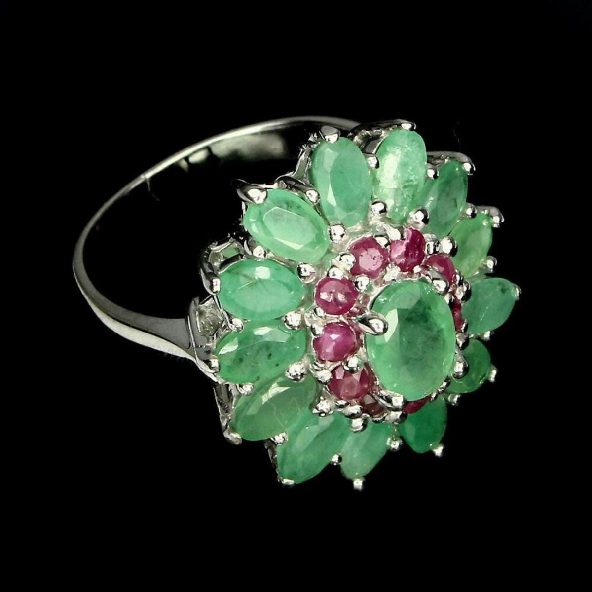 925 STERLING SILVER;PLATE14K WHITE GOLD;RING SIZE8.5(resizeable)MAIN STONEEMERALD;OTHER GEMSRUBY;TOTAL WEIGHT32.43 CT (TOTAL WEIGHT OF SILVER + STONE)DIMENSION* STONE 2.0 TO 7.0 X 5.0 MM. * FACE RING 21.0 X 19.0 MM.MAIN STONE SHAPEOVAL CUT;MAIN STONE COLOR -GREEN;TREATMENTUNHEATEDORIGIN-Columbia;HARDNESS7.5 - 9.0