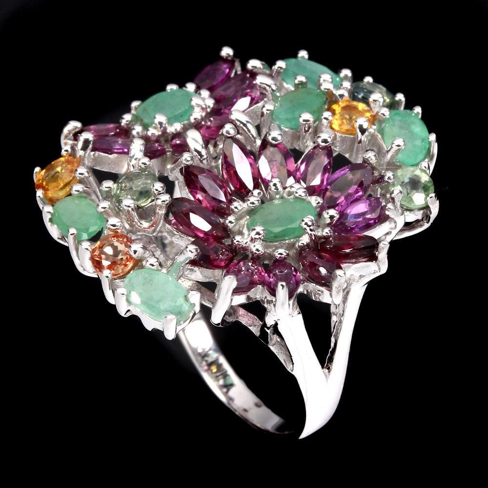 925 STERLING SILVERPLATE14K WHITE GOLDRING SIZE8 (resizeable)MAIN STONEEMERALDOTHER GEMSRHODOLITE GARNET,SAPPHIRETOTAL WEIGHT46.67 CT (TOTAL WEIGHT OF SILVER + STONE)DIMENSION* STONE 3.0 TO 5.0 X 3.0 MM. * RING 8.0 SIZE * FACE RING 28.0 X 22.0 MM.MAIN STONE SHAPEOVAL CUTMAIN STONE COLORTOP RICH GREENCLARITY/GRADETRANSPARENTLUSTERGORGEOUSTREATMENTUNHEATEDORIGINcolumbia/BRAZILHARDNESS7.5 - 8.0