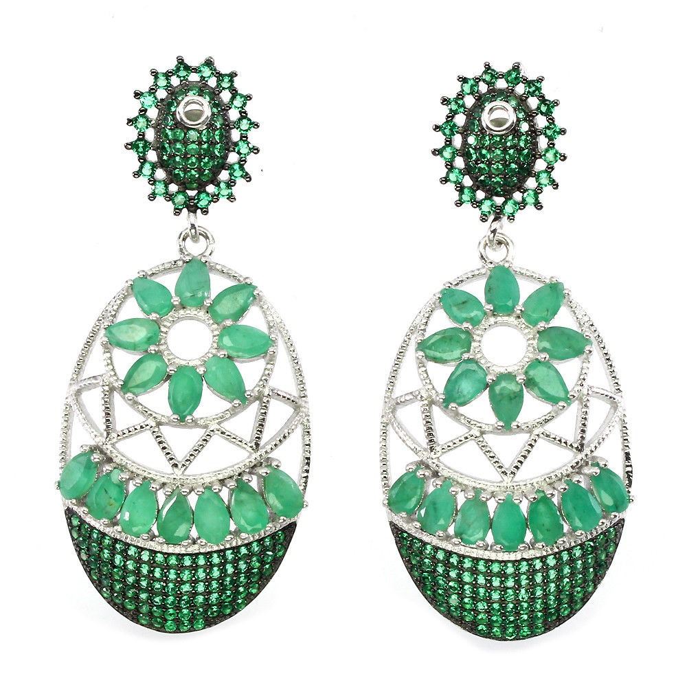 925 STERLING SILVER;PLATE14K WHITE GOLD;MAIN STONEEMERALD;OTHER GEMSCUBIC ZIRCONIA;TOTAL WEIGHT70.83 CT (TOTAL WEIGHT OF SILVER + STONE)DIMENSION* STONE 5.0 X 3.0 MM. * CZ 1.0 TO 2.0 MM. * FACE EARRINGS 51.0 X 22.0 MM.MAIN STONE SHAPEPEAR CUTMAIN STONE COLORTOP RICH GREENCLARITY/GRADETRANSPARENTLUSTERGORGEOUSTREATMENTUNHEATEDORIGINColumbia;