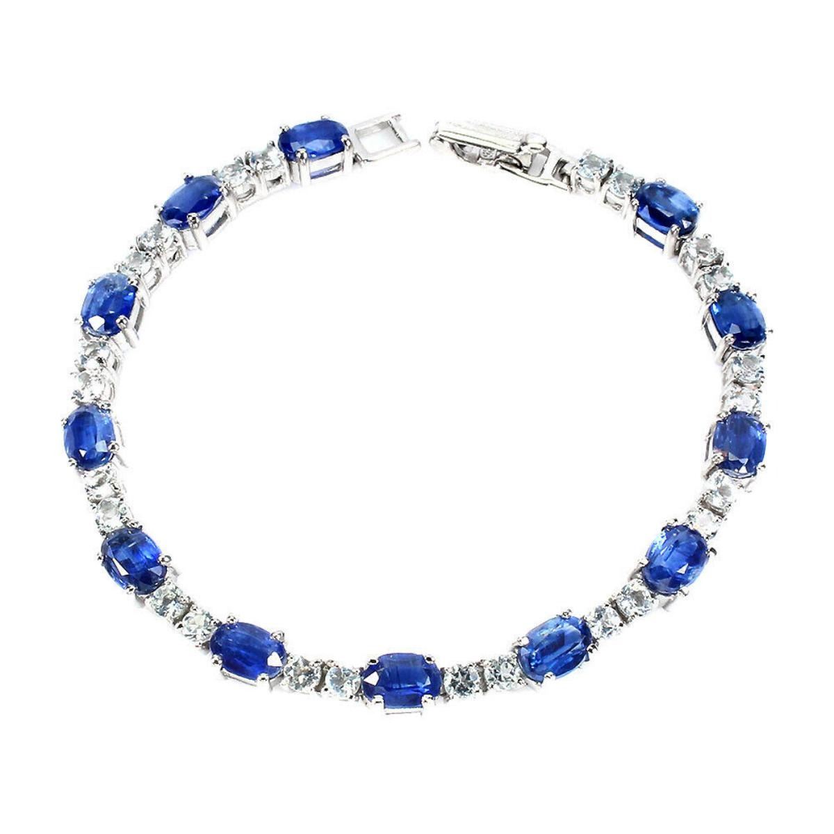 925 STERLING SILVER;PLATE-14K WHITE GOLD;MAIN STONE-KYANITE;OTHER GEMS-AQUAMARINE;TOTAL WEIGHT-14.91 GRAM (TOTAL WEIGHT OF SILVER + STONE)DIMENSION-* STONE 3.0 TO 7.0 X 5.0 MM.;* TOTAL LENGTH- 7.5 INCHES.;* FACE BRACELET 170.0 X 5.0 MM.;MAIN STONE SHAPE-OVAL CUT;MAIN STONE COLOR-TOP CORNFLOWER BLUE;CLARITY/GRADE-IF TO VVS;TREATMENT-UNHEATED;ORIGIN-NEPAL;HARDNESS-5.0 - 7.0;