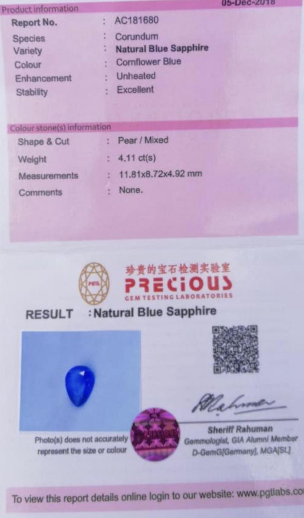 Natural Ciornflower Blue Untreated Ceylon Sapphire ...size 11.81 x 8.72 x 4.92 MM; Clarity VS; Color - Cornflower Blue; Origin - Ceylon; free from any kind of treatment......earth mined