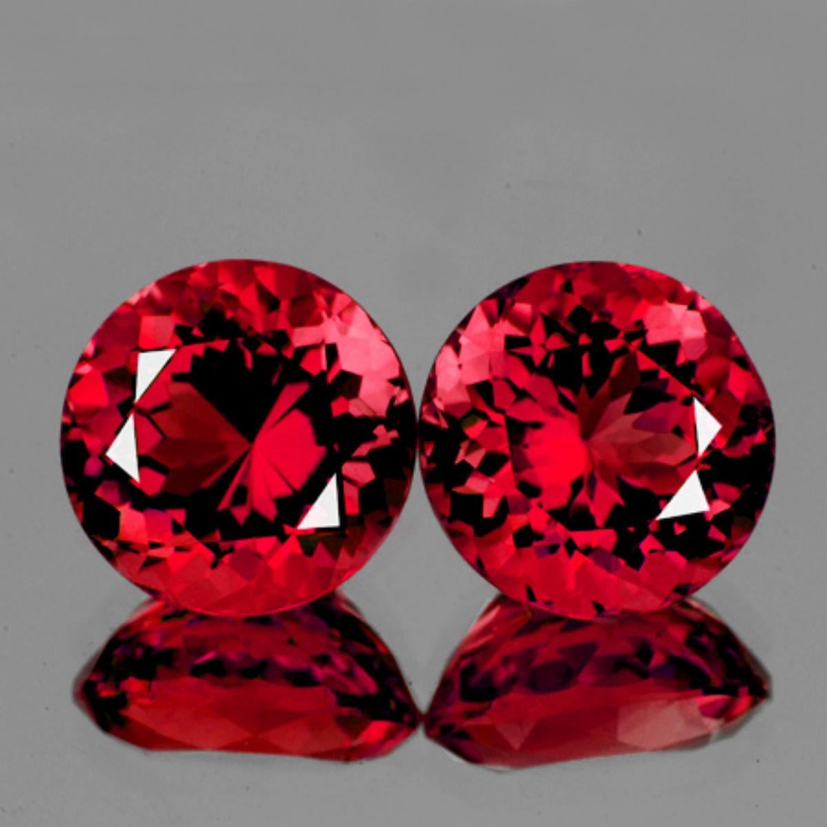 Natural Topaz WEIGHT : 13.06 cts; SHAPE : Round ; SIZE ( L x W x D ) : 11.00 mm; QUANTITY : 2 pieces (Perfect Matching Pair) COLOR : Crimson Red; CLARITY : Flawless-VVS1; ORIGIN : Brazil; HARDNESS : 8; LUSTER : Excellent!!! TREATMENT : Heated;