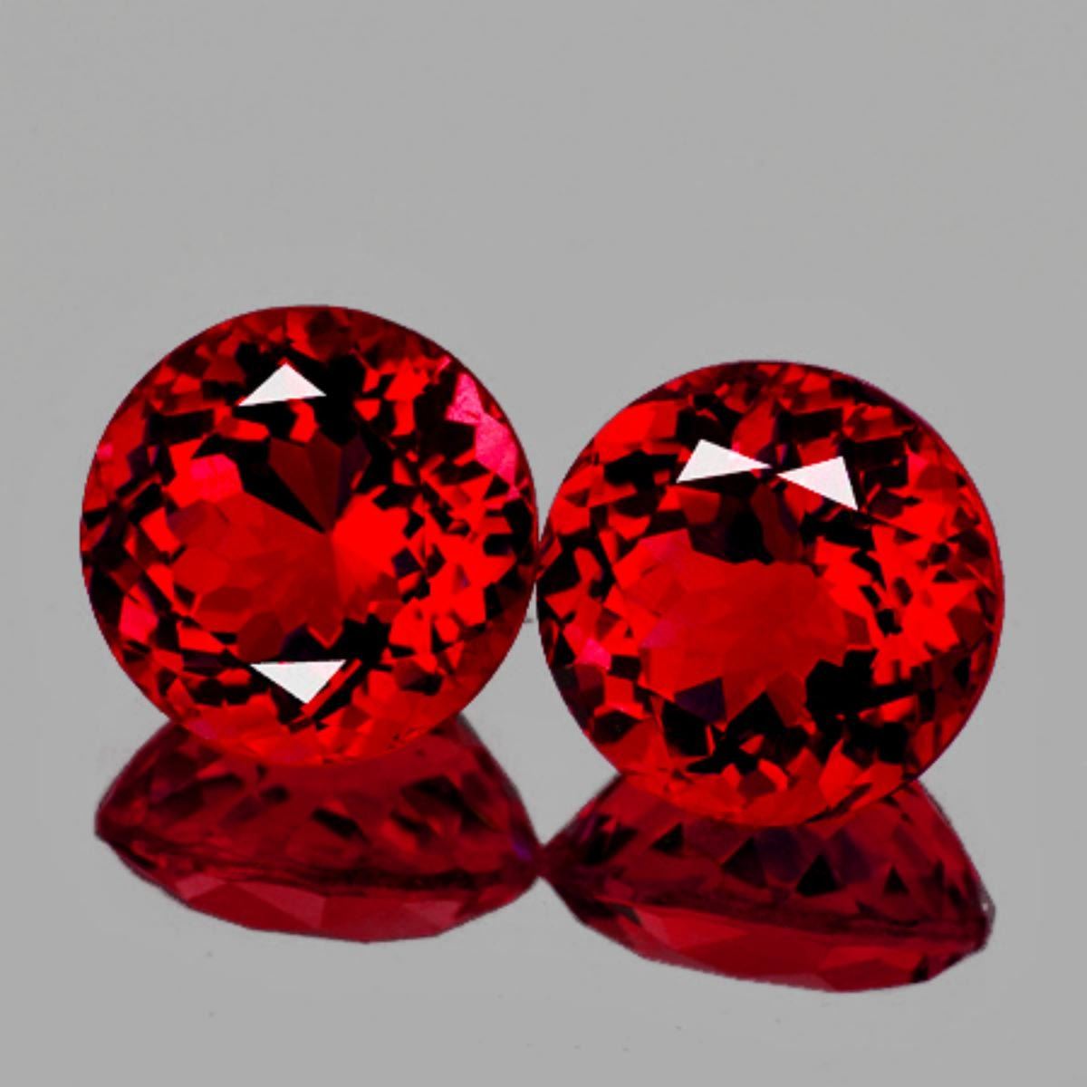 Natural Topaz; WEIGHT : 11.03 cts; SHAPE : Round ; SIZE ( L x W x D ) : 10.00 mm; QUANTITY : 2 pieces (Perfect Matching Pair) COLOR : Crimson Red; CLARITY : Flawless-VVS1; ORIGIN : Brazil; HARDNESS : 8; LUSTER : Excellent!!! TREATMENT : Heated;