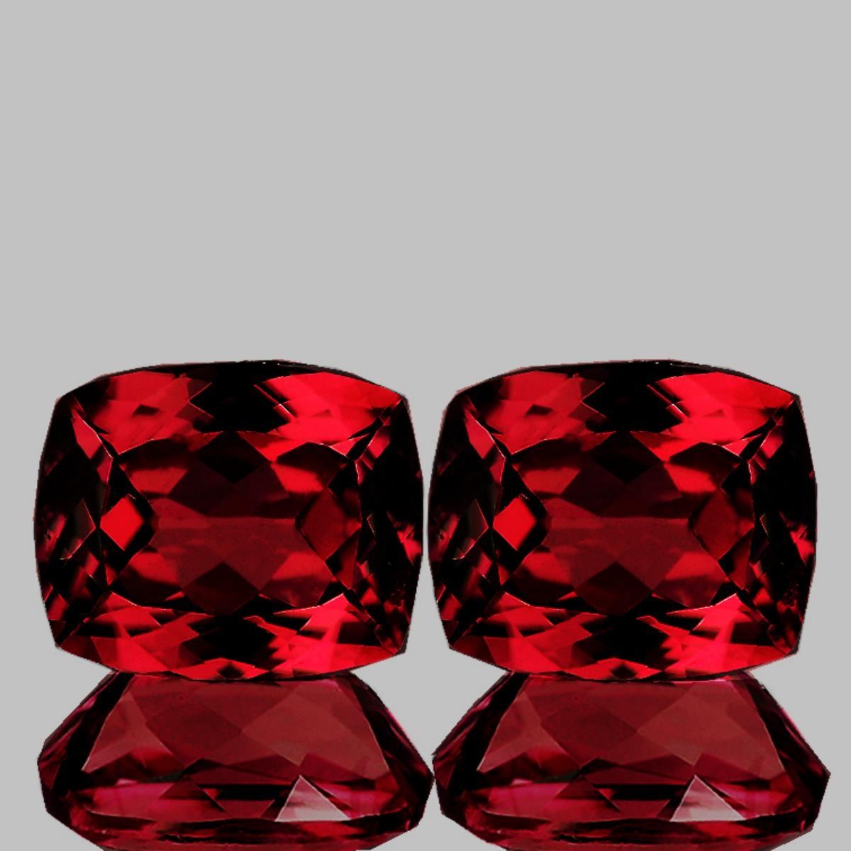 Natural Topaz WEIGHT : 13.73 cts; SHAPE : Cushion; SIZE ( L x W x D ) : 12.00 x 10.00 mm; QUANTITY : 2 pieces (Perfect Matching Pair) COLOR : Crimson Red; CLARITY : Flawless-VVS1; ORIGIN : Brazil; HARDNESS : 8; LUSTER : Excellent!!! TREATMENT : Heated/Treated;