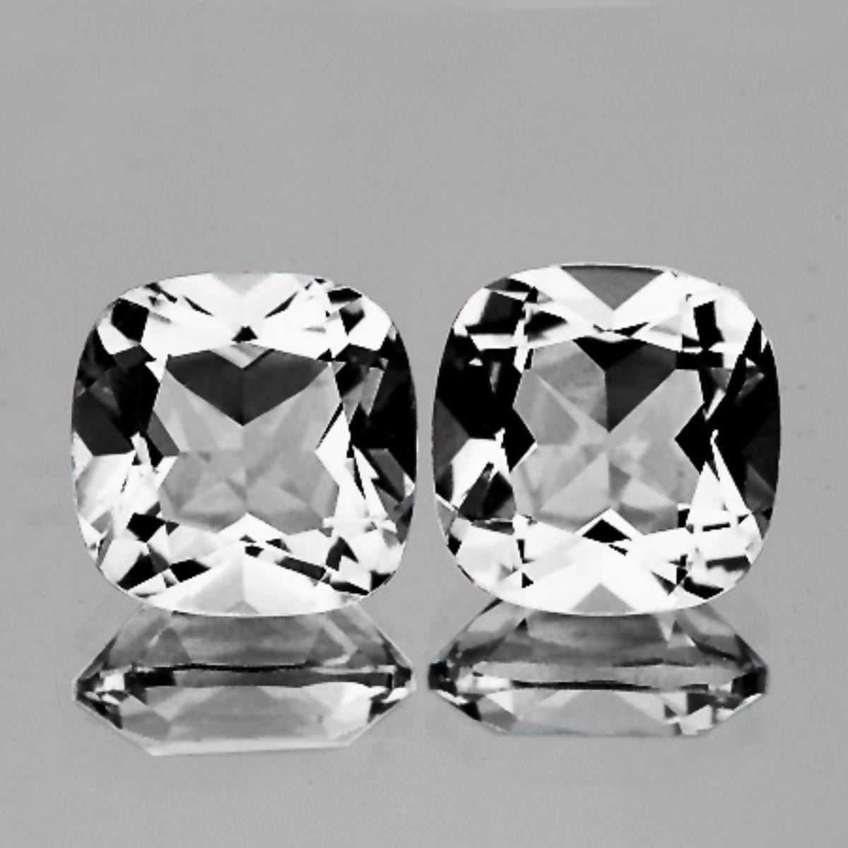 Natural White Topaz; SHAPE : Cushion Cut; SIZE ( L x W x D ) : 8.00 mm; QUANTITY : 2 pieces ( Perfectly Matched Pair) COLOR : White/Colorless; CLARITY : Flawless-VVS1 ; AAA Grade; ORIGIN : Brazil; HARDNESS : 8; LUSTER : Excellent!!! TREATMENT : Unheated/Untreated 100% Natural;