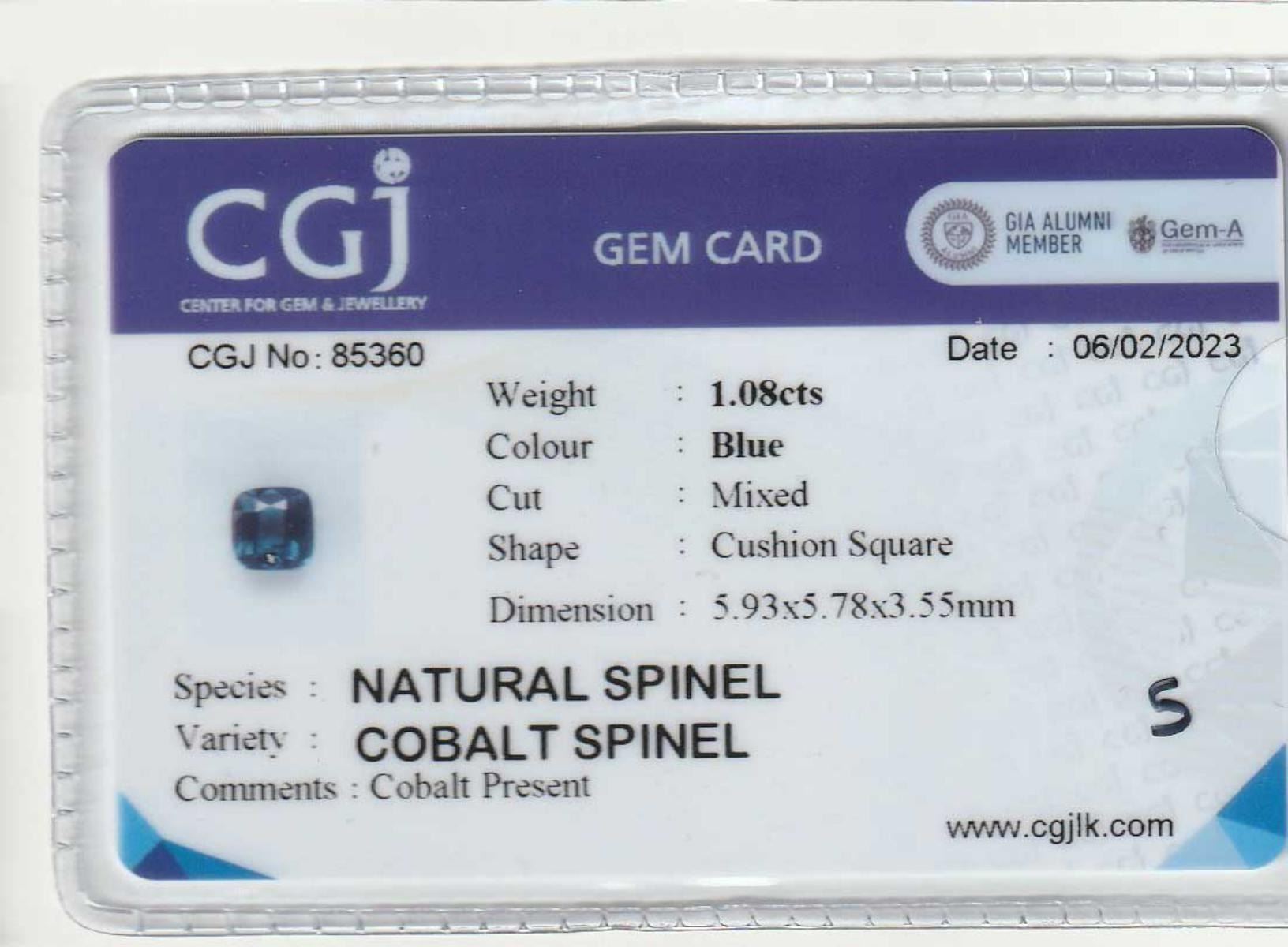 Natural Cushion Cobalt Blue Spinel 1.08 Cts- Untreated; Size - 5.93x 5.78 x 3.55 MM; Eye Clean; Completely untreated ; Origin - Vietnam;