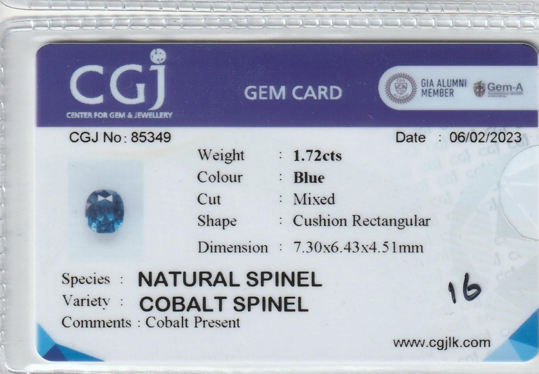 Natural Cushion Cobalt Blue Spinel 1.72 Cts- Untreated; Size - 7.30 x 6.43 MM; Eye Clean; Completely untreated ; Origin - Vietnam;