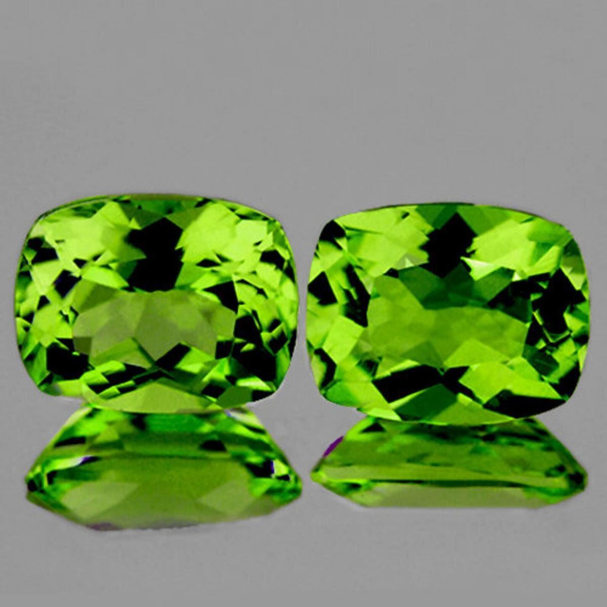 Natural Peridot; WEIGHT : 10.56 cts; SHAPE : Cushion; SIZE : 11.00 x 9.00 & 11.00 x 8.8 mm; QUANTITY : 2 pieces COLOR : Green; CLARITY : VVS; ORIGIN : PAKISTAN; HARDNESS : 7; LUSTER : Excellent!!! TREATMENT : UNHeated;