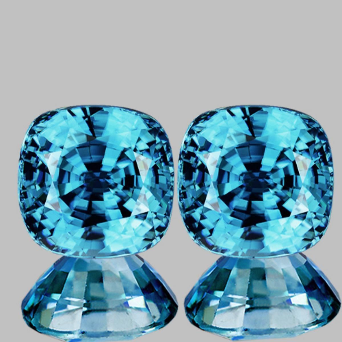 Natural Blue Zircon ; SHAPE : Cushion; SIZE ( L x W x D ) : 5.50 mm; QUANTITY : 2 pieces ; COLOR : Intense Blue ; CLARITY : Flawless-VVS1 AAA Grade; ORIGIN : Cambodia; HARDNESS : 7.5; LUSTER : Excellent!!! TREATMENT : unHeated