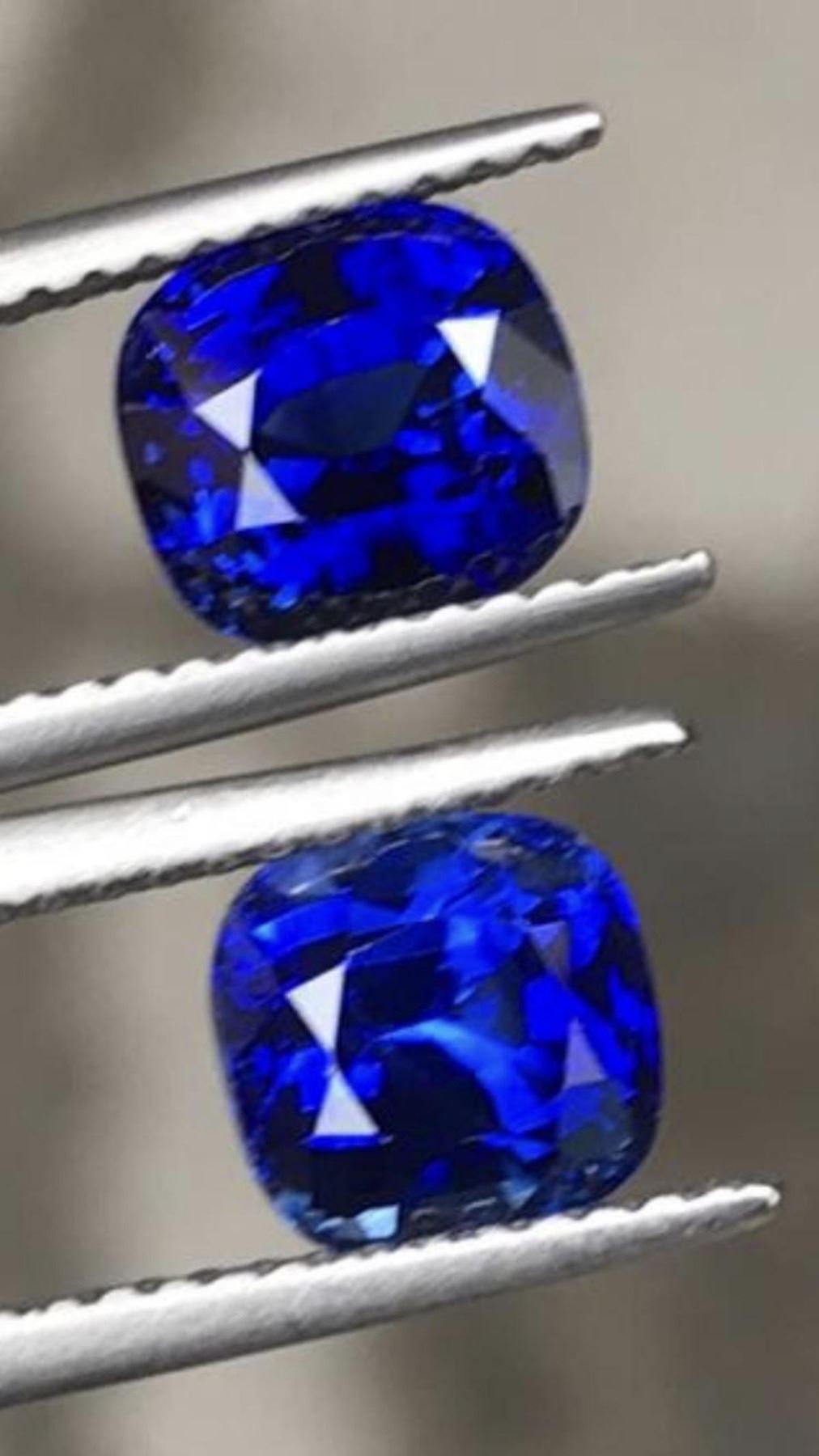 Natural Cushion Royal Blue Sapphire Pair 4.14 Cts .....size - 6.31 x 6.09 mm & 6.32 x 6.30 mm; VVS quality......top Royal blue color..AAA Quality ..full luster Fire..Gently heated only..certified..Origin - Ceylone