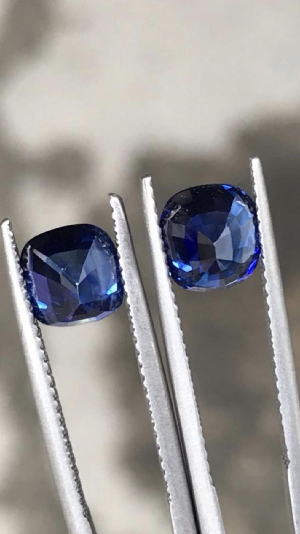 Natural Cushion Royal Blue Sapphire Pair 4.14 Cts .....size - 6.31 x 6.09 mm & 6.32 x 6.30 mm; VVS quality......top Royal blue color..AAA Quality ..full luster Fire..Gently heated only..certified..Origin - Ceylone