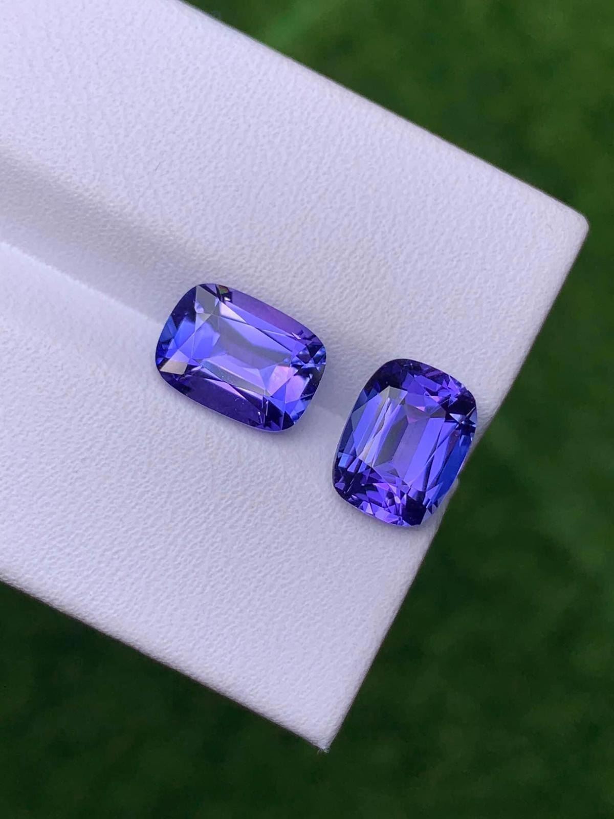 Natural Cushion Tanzanite Pair 4.38 Carats - VVS......Approx size - 9.00 x 6.58 x 4.59 MM; Shape - Cushion step cut; Top Color; Gently heated; Origin - Tanzania