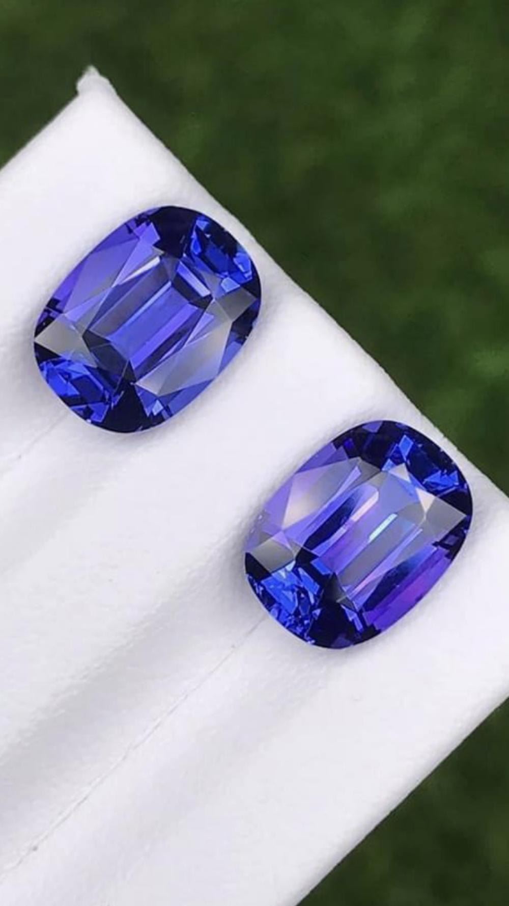 Natural Cushion Tanzanite Pair 6.73 Carats - VVS......Approx size - 10.41 x 7.79 x 5.25 MM; Shape - Cushion step cut; Top Color; Gently heated; Origin - Tanzania